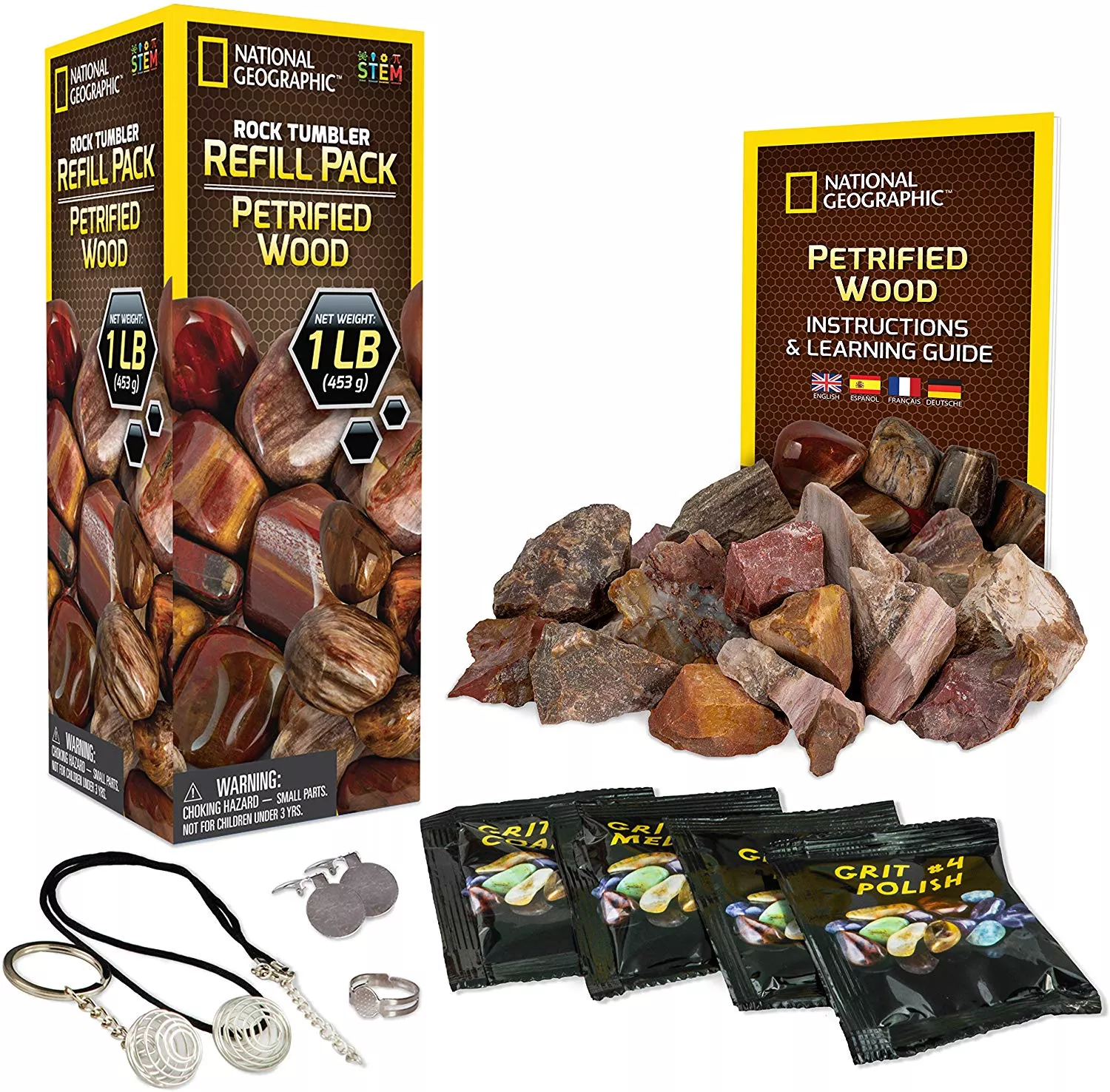NATIONAL GEOGRAPHIC Rock Tumbler Refill – 1 Lb. Mix of Genuine Petrified Wood Fossils