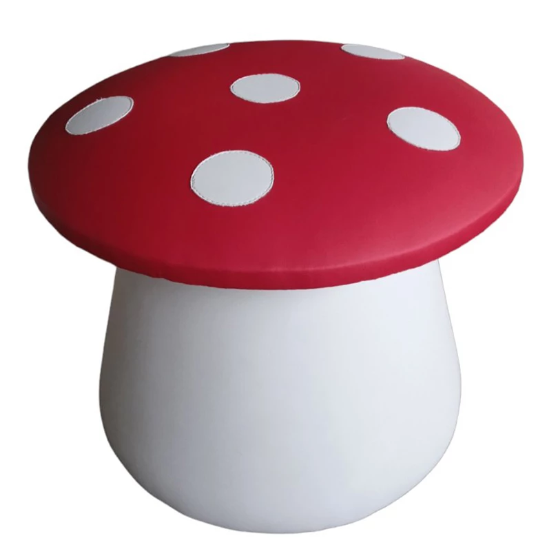 Каркасний пуф «Грибочок» призначений для комплектації ігрових залів, дитячих садків та житлових кімнат. Конструкція даного виробу виконана у формі гриба, що дозволяє використовувати пропонований пуф не тільки як зручне і функціональне сидіння, але і як елемент для тематичних ігор. Основа виготовлена з дерева із застосуванням деталей із ДСП та ДВП для забезпечення стійкості. Модель не має гострих кутів і виступаючих жорстких частин, що знижує ризик травматизму. Завдяки невеликій вазі пуф легко переміщається всередині приміщення без допомоги дорослих.