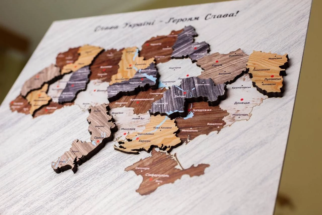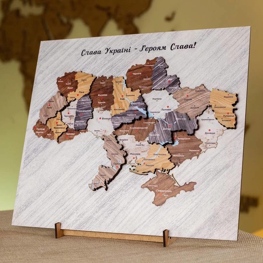 Дерев’яна карта України на підставці