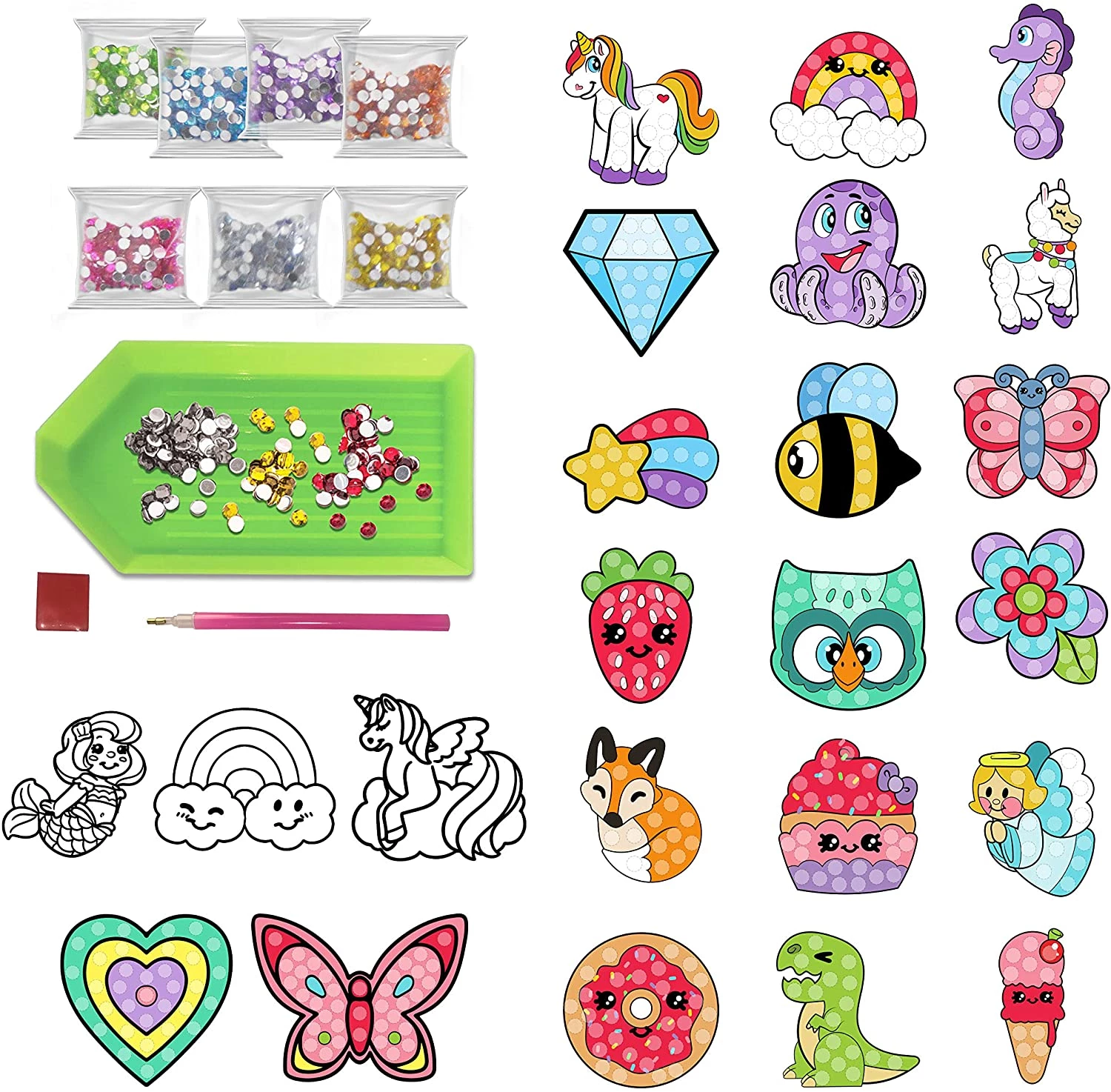 Цей великий і захоплюючий набір — ідеальний інструмент для розвитку творчих навичок та дрібної моторики. Він дозволяє дитині створювати шедевральні роботи, що вражають своїм блиском та сяйвом, прикрашаючи їх стразами (декоративними камінцями). Комплект включає одразу три формати для декорування: Стікери, Сонячні пастки та Брелоки.