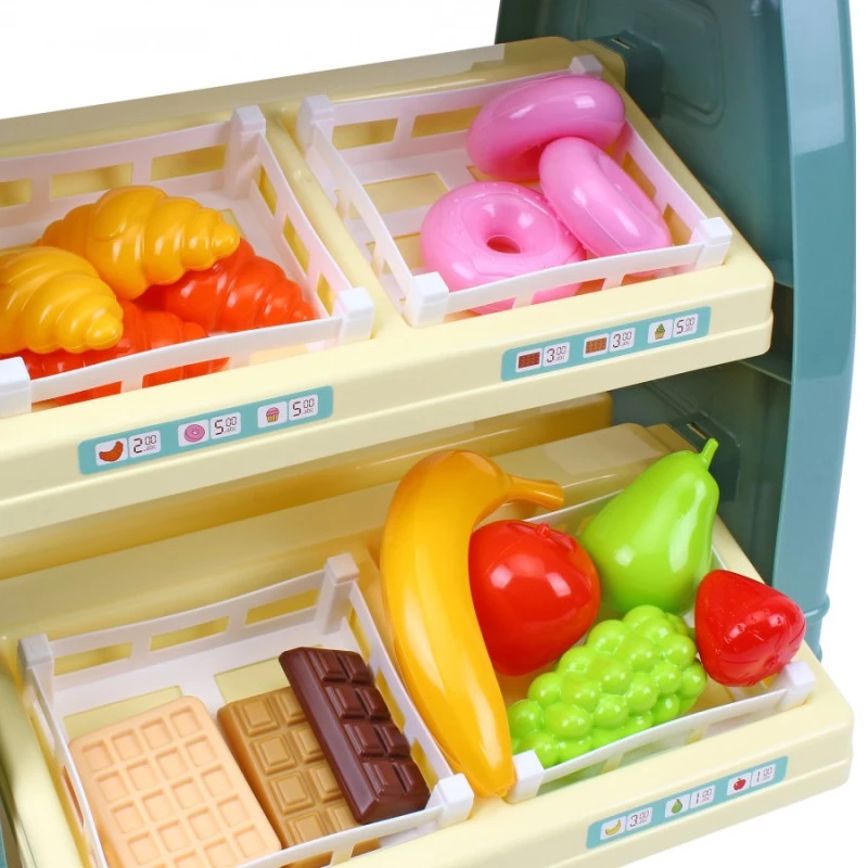 Головна особливість — банківський термінал зі сканером коду та карткою в комплекті. Іграшковий пристрій імітує процес оплати: звучить сигнал і спалахує лампочка, роблячи гру максимально захопливою та реалістичною. Також доступна «оплата» паперовими «грошима», що чудово допомагає дитині вчитися взаємодії з клієнтами, рахунку та віддачі здачі.
