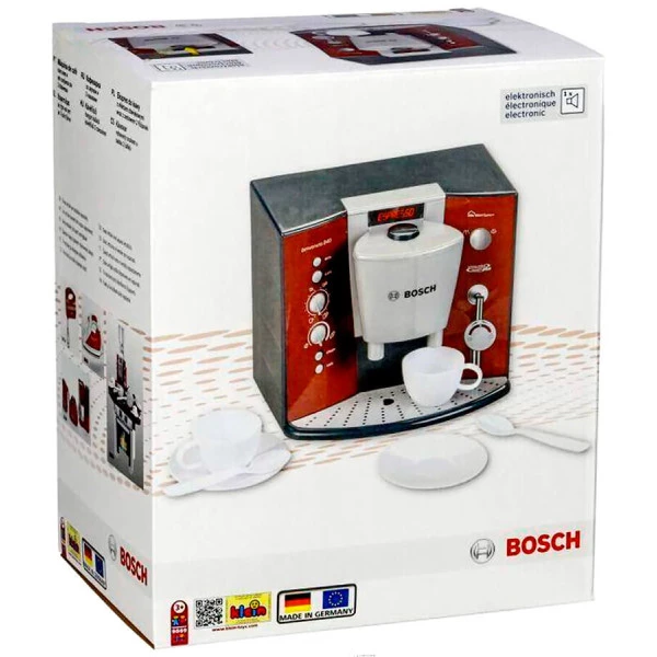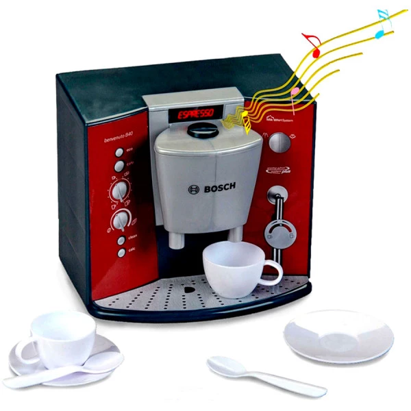 Ємність заповнюється водою, при цьому можна не боятися, що вона проллється звідти. В процесі приготування іграшка видає звуки, що імітують роботу справжньої кавоварки. Видає три різні звуки, що відповідають різним процесам заварювання кави. Кавоварка точно відтворює оригінальний продукт Bosch.