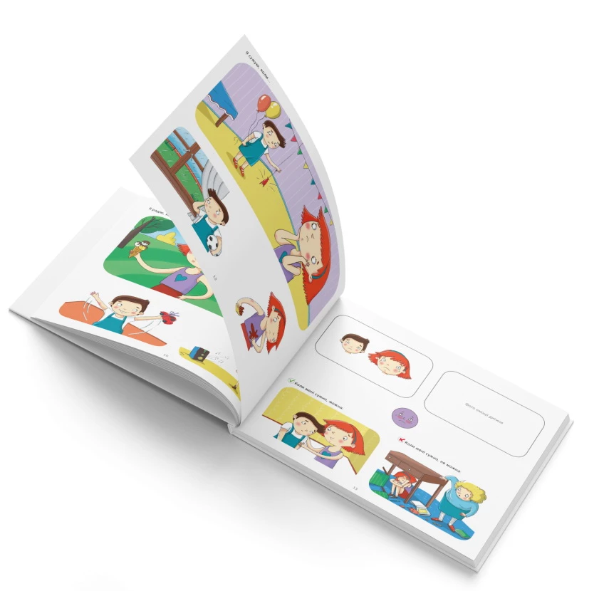 Прекрасна книга, яка допоможе дитині розуміти і розпізнавати 10 емоцій. У цій книзі є відповіді на безліч питань, в тому числі і питання про те навіщо дитині треба розуміти емоції. Ця книга підходить для дітей будь-якого віку і для тих, кому потрібно особливі освітні потреби. Також підходять для дітей з аутизмом, синдромом Дауна, ЗПР. У книзі все продумано так, щоб дитина могла асоціювати себе з головними героями. Тому головні герої хлопчик і дівчинка. Плюс є поле, в якому можна приклеїти фото дитини, із зображенням тієї чи іншої емоції. Таким чином дитина зможе краще зрозуміти де і в якому емоційному стані перебуває. Вас чекає ще багато чого цікавого з цією книгою. І приємний бонус, про який ви дізнаєтеся, заглянувши під обкладинку.