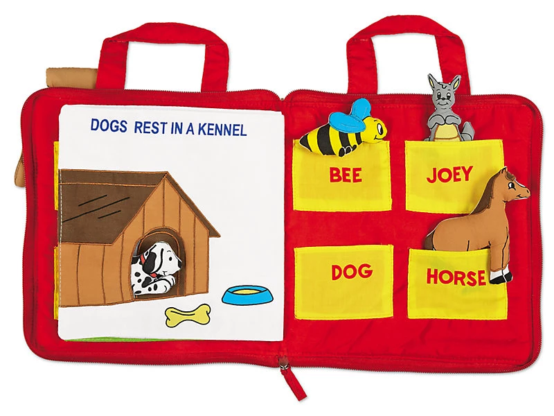 У м'якій вишитій книзі 8 інтерактивних сторінок з простим текстом і барвистими ілюстраціями, які допомагають дітям навчитися розпізнавати будиночки тварин!
