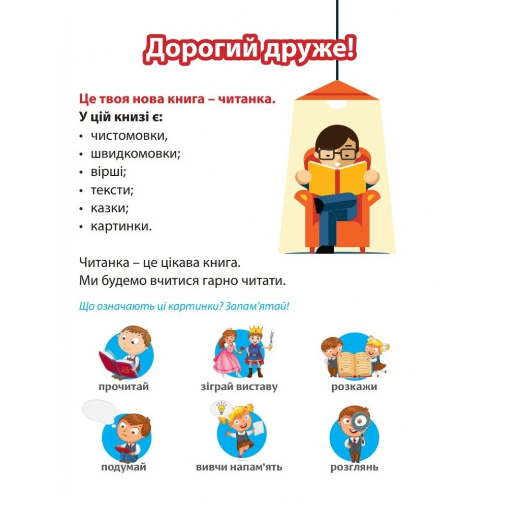 З цією книгою можна проводити заняття з дітьми, у яких різний рівень навичок читання.