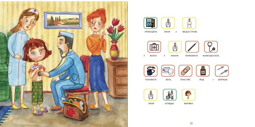 Дитяча книга з піктограмами, яка розроблена для розвитку мови у дітей з розладом аутичного спектру та мовними порушеннями. Завдяки піктограмам, діти розуміють значення слова.