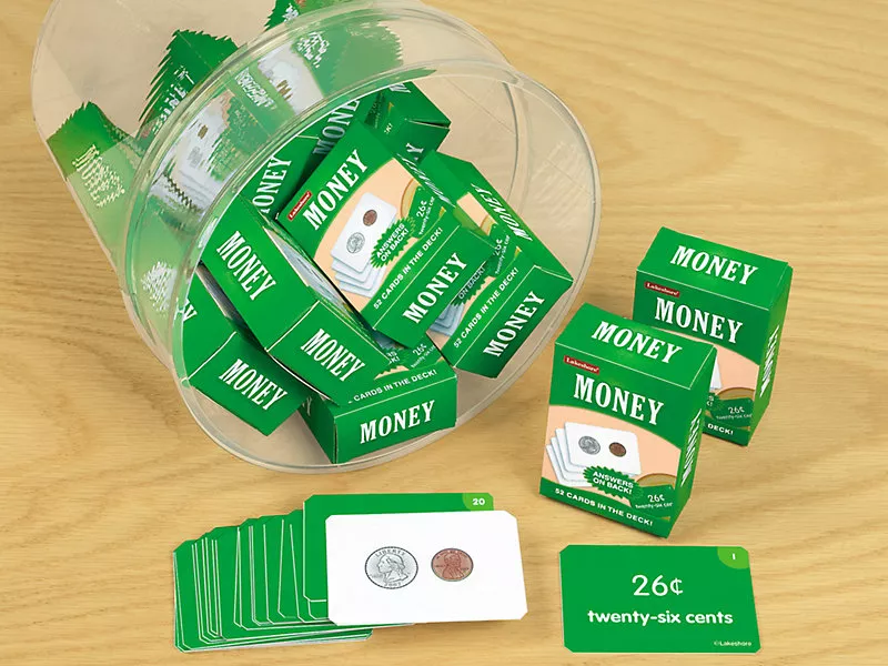 Захоплюючий набір математичних карт Гроші, з якими діти легко опанують грошовими навичками. Діти використовують колоду в якості традиційних флеш-карт або слідують простим інструкціям, щоб грати карточні ігри.