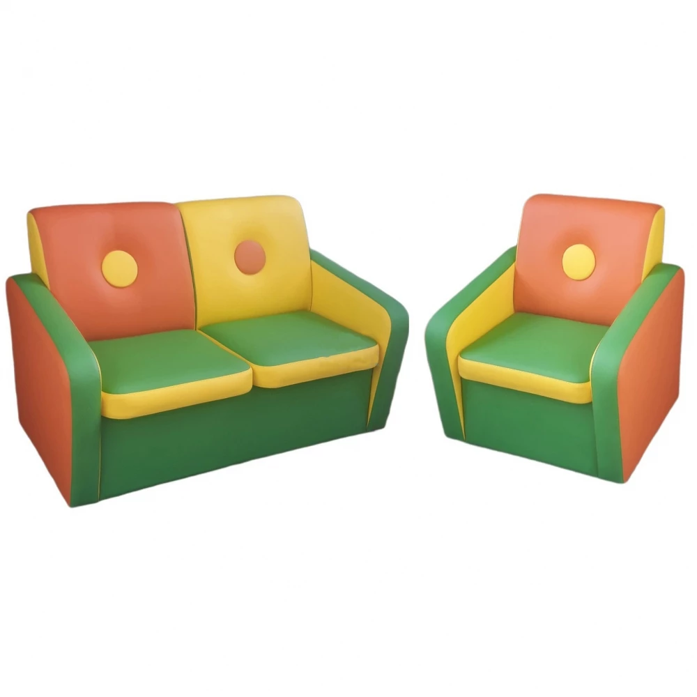 М'які модульні меблі призначені для облаштування ігрових кімнат у житлових будинках чи дитячих закладах. Комплект «Ґудзик» складається з двох елементів — компактного дивана та крісла, які можуть використовуватися як для відпочинку, так і для ігор.