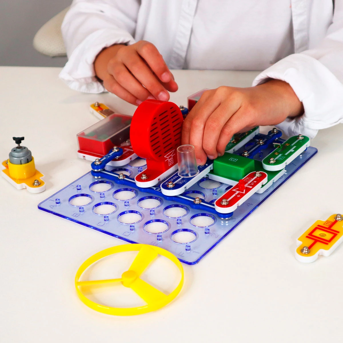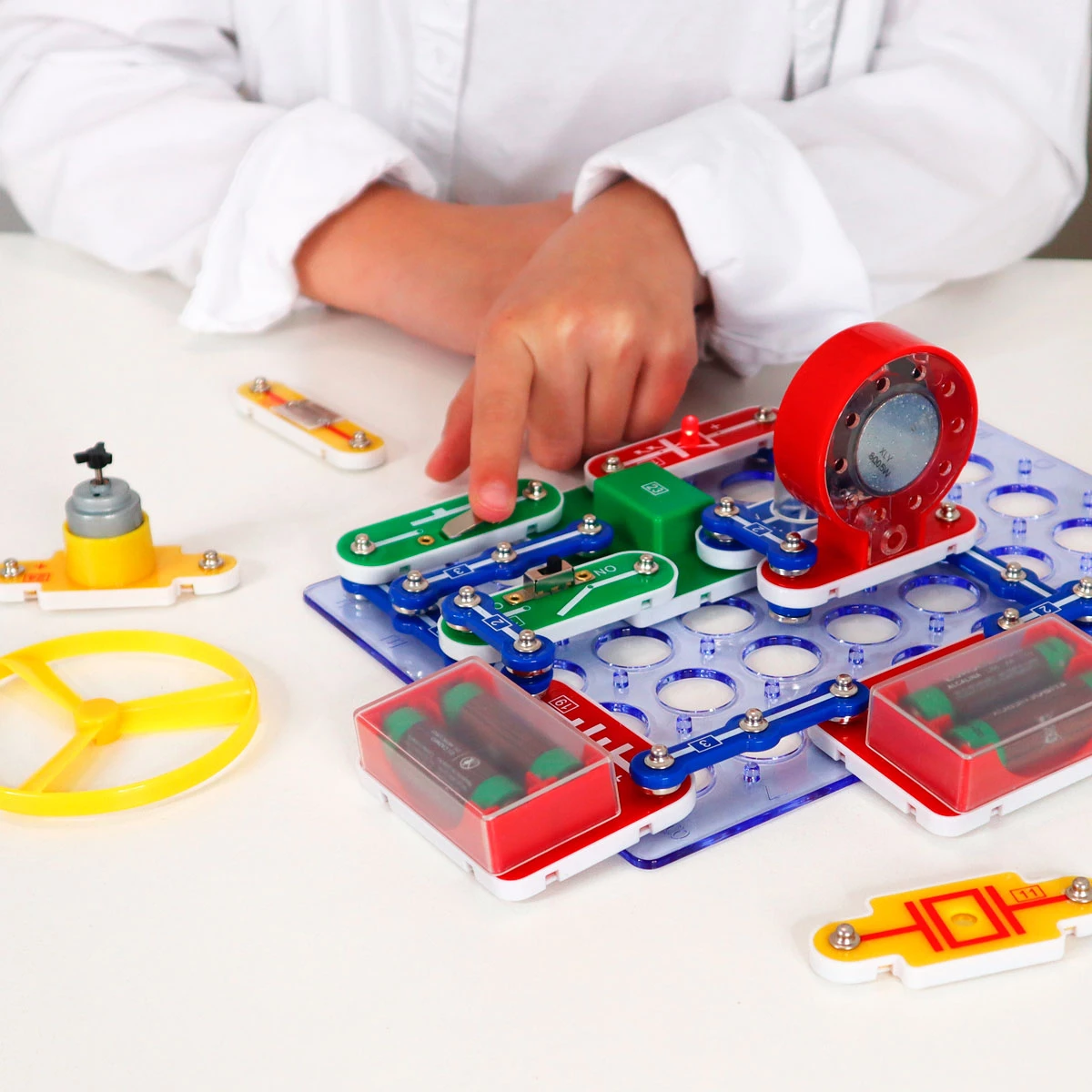 Чудовий подарунок для маленьких експериментаторів! За допомогою представленого набору дитина зможе створити безліч електронних пристроїв, наприклад сигналізацію, дзвінок, автоматичні освітлювачі, а також кумедні іграшки. Деталі збираються без допомоги паяльника, що дозволяє швидко досягти ефективного результату.