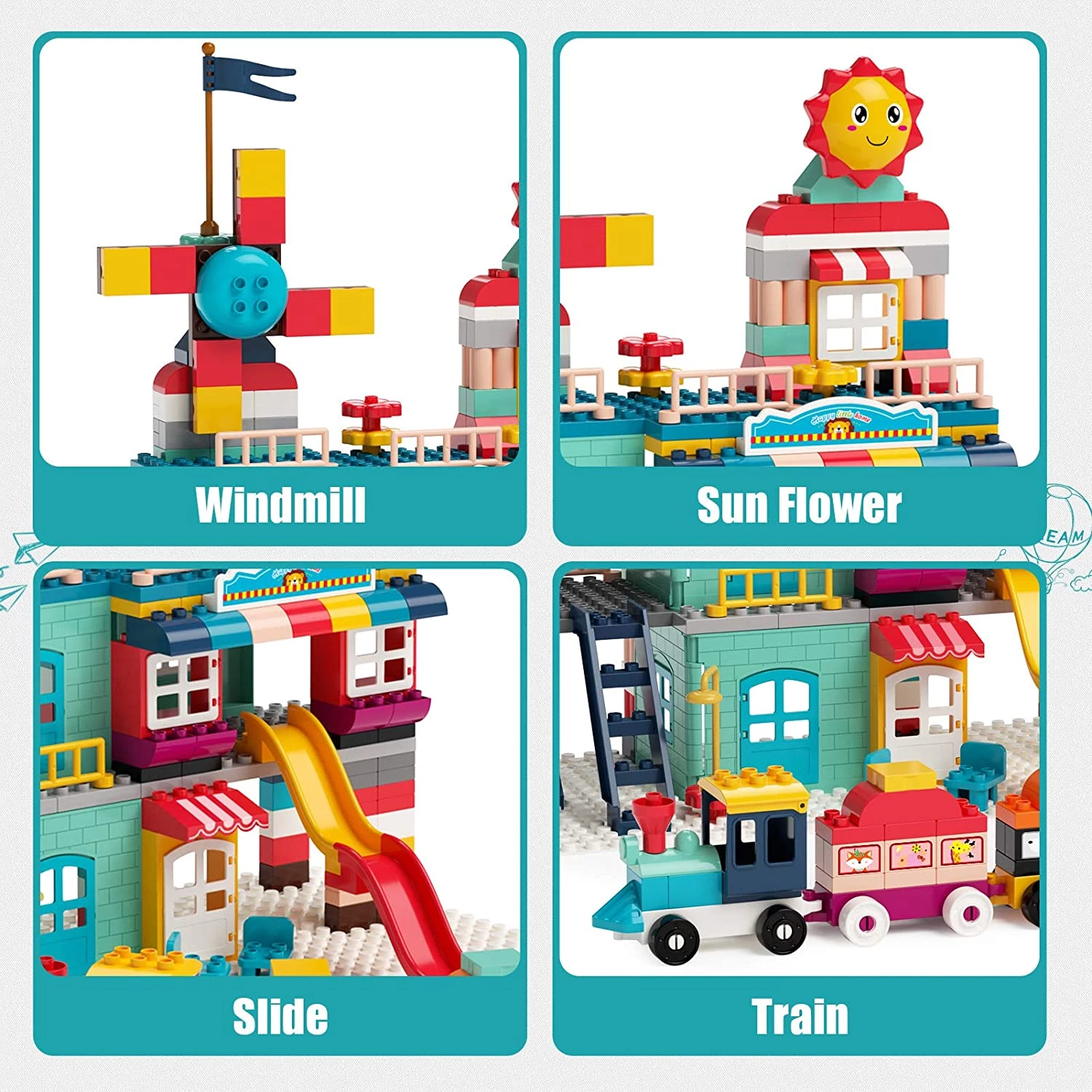 burgkidz Building Blocks for Kids Ages 4-8, 301 Piece Windmill Town