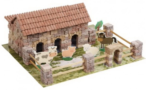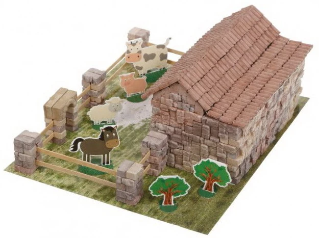 Оригінальний конструктор призначений для збирання красивої ферми, в яку можна поселити тварин і придумувати з нею різноманітні ігри. Екологічні міні-цеглинки кріпляться між собою за допомогою клею ПВА. Конструкцію можна буде збирати кілька разів, для цього необхідно саморобку помістити в воду, просушити і зачистити елементи. Збірка такого конструктора відмінно розвиває дрібну моторику, координацію і уважність.