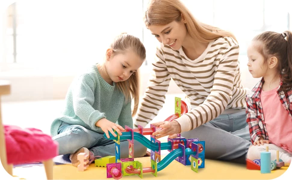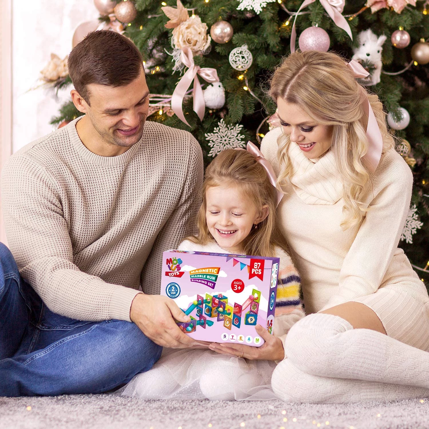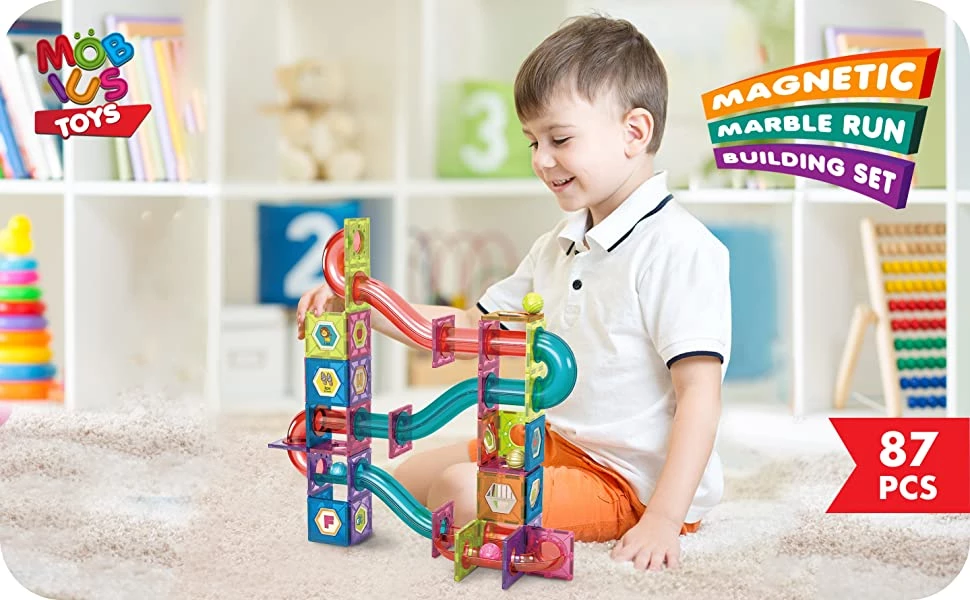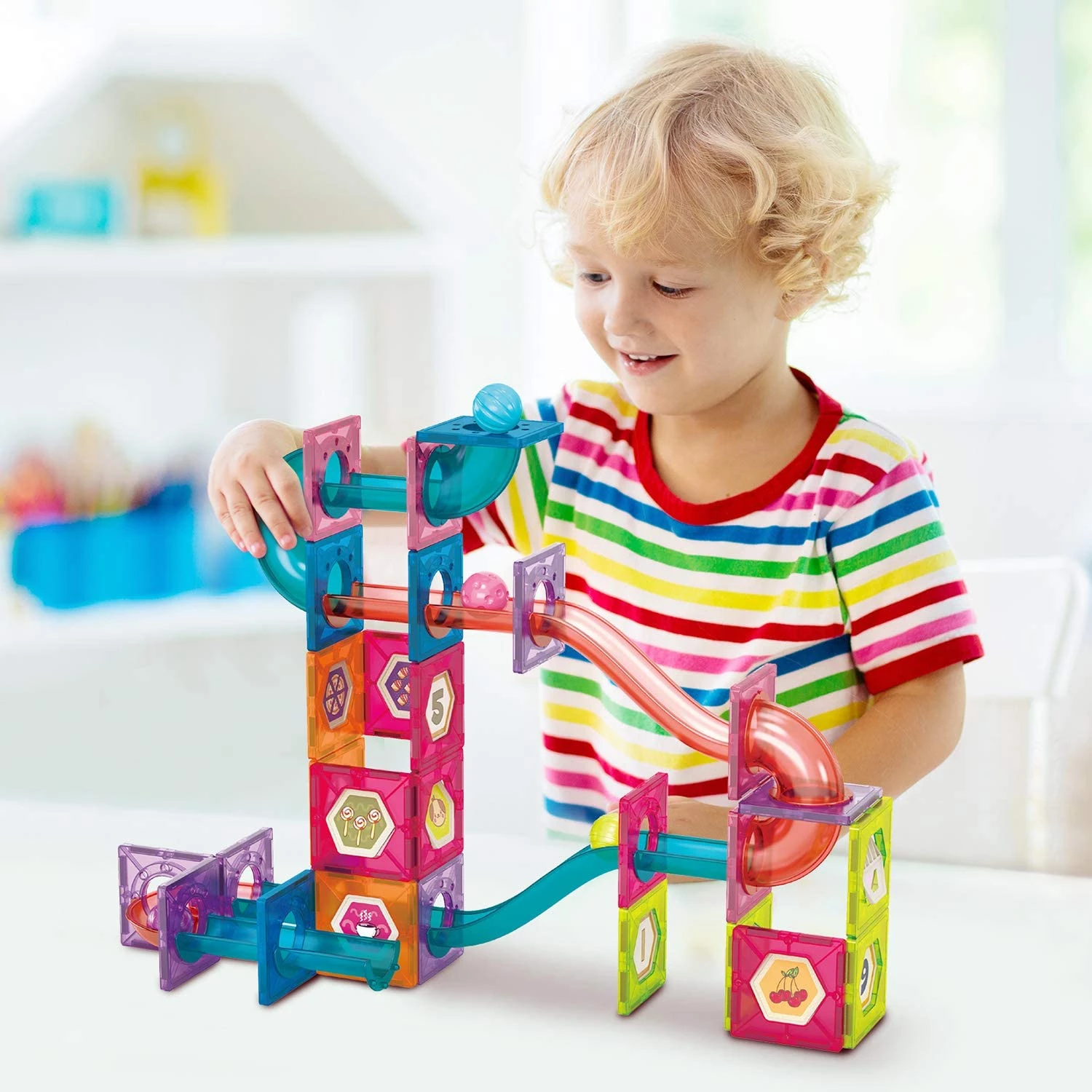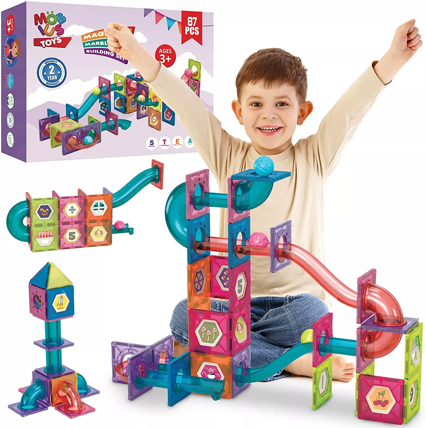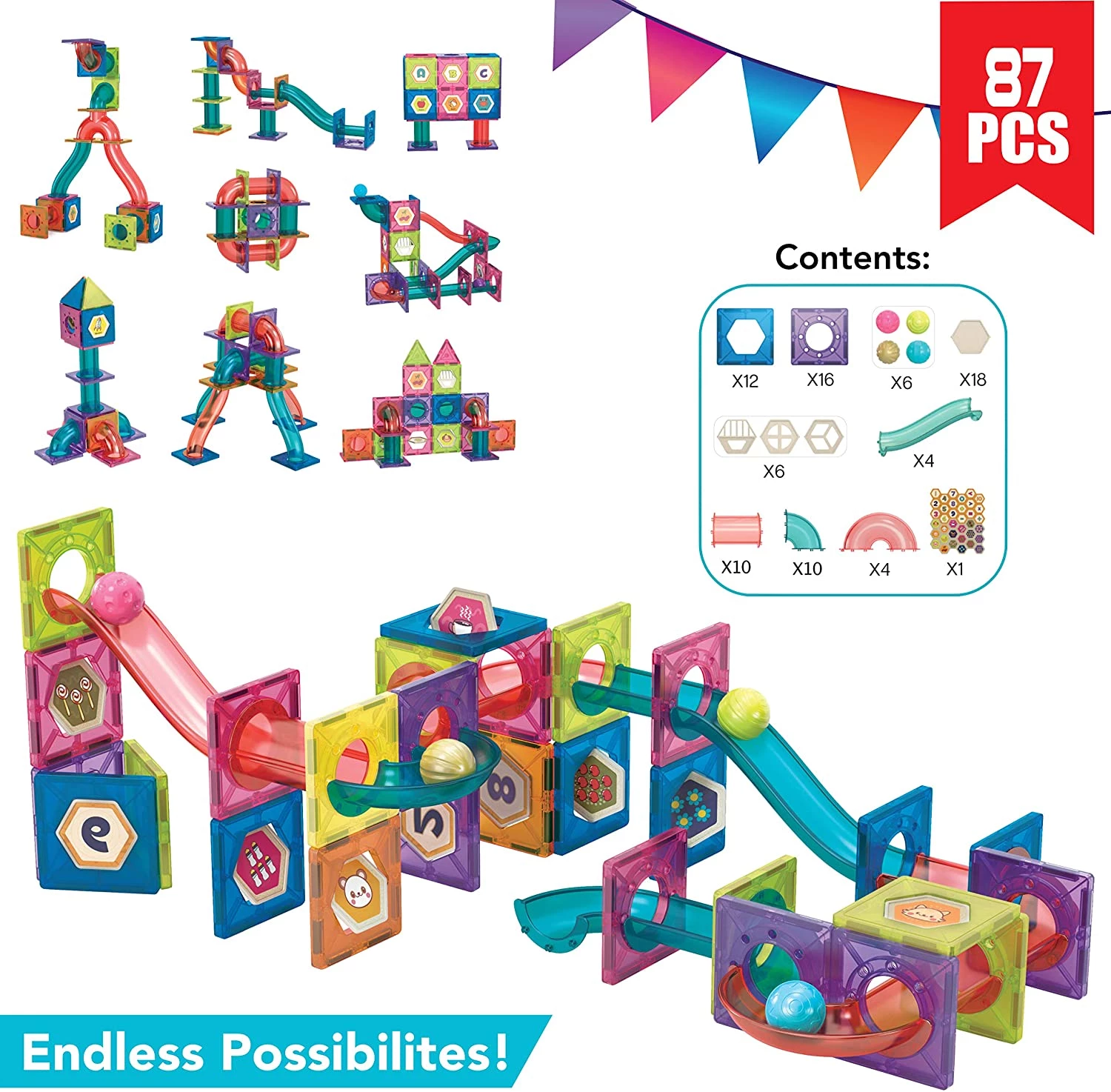 Magnetic Marble Run Building Set - 87 Piece - 3D Magnetic Tiles Ball Track