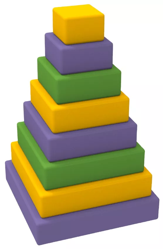 Даний ігровий набір допоможе розвинути у дітей логічне мислення, навички сортування і конструювання. Кольорові блоки представлені від більшого до меншого, діти зможуть зібрати з нього пірамідку. Комплект виконаний з міцного зносостійкого матеріалу, а всередині знаходиться поролон, добре зберігає форму. Набір можна використовувати в різних дитячих розважальних закладах. Конструктор дарує неймовірні тактильні відчуття і приваблює своїм яскравим дизайном.