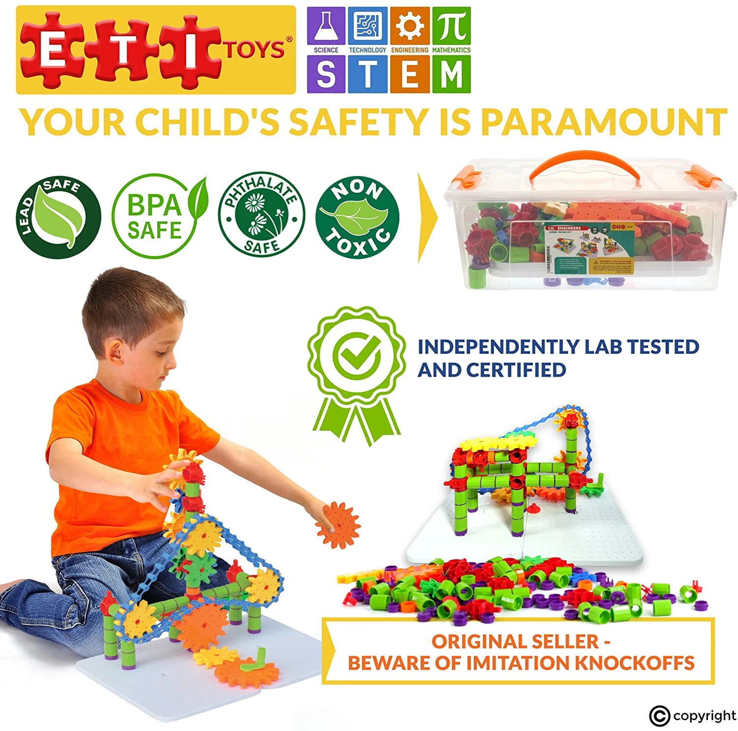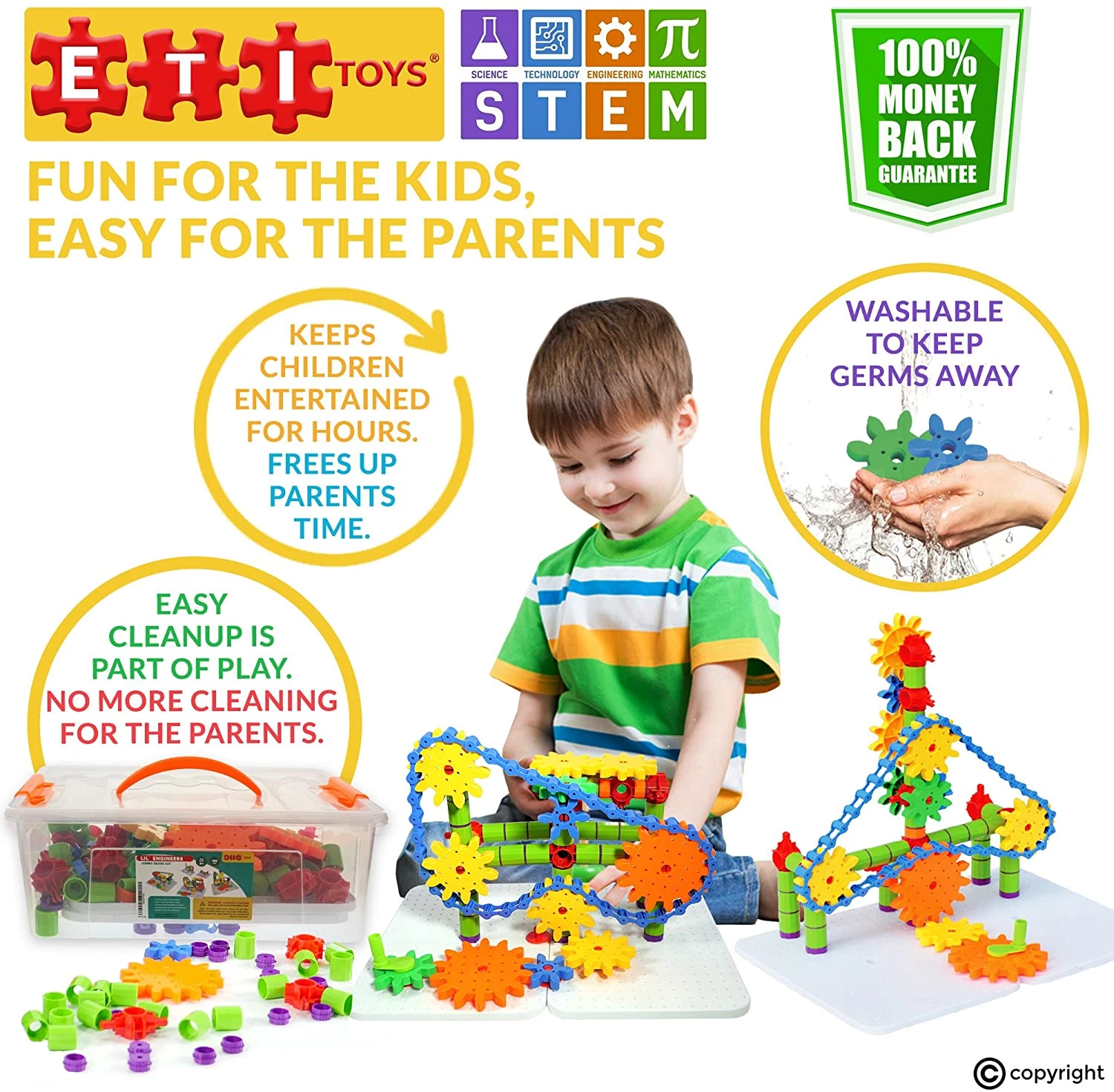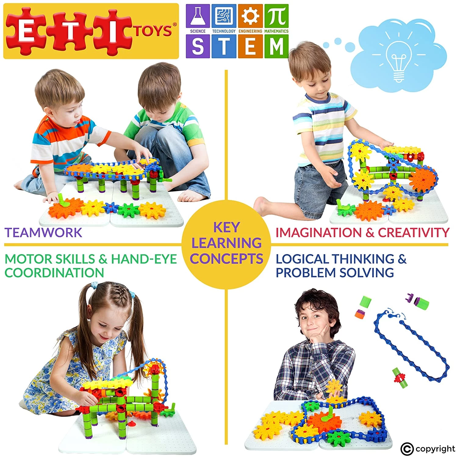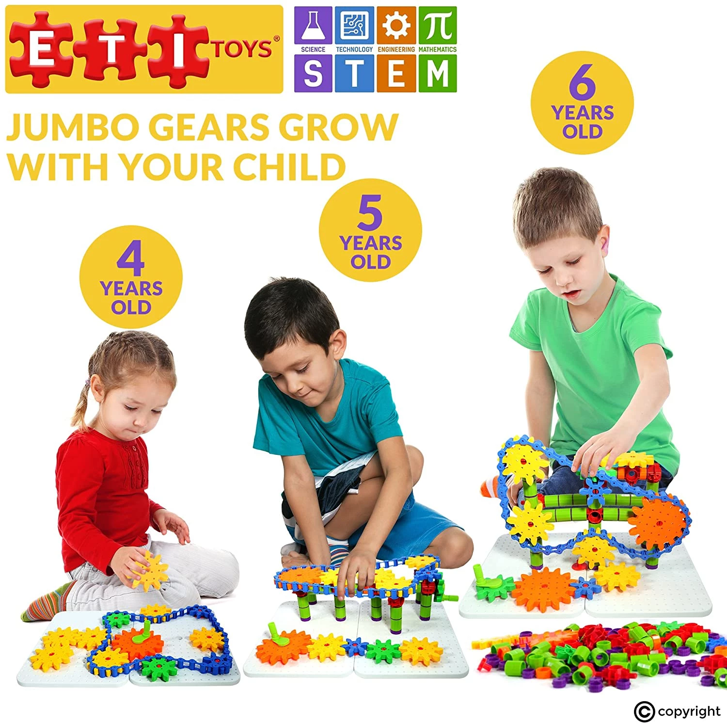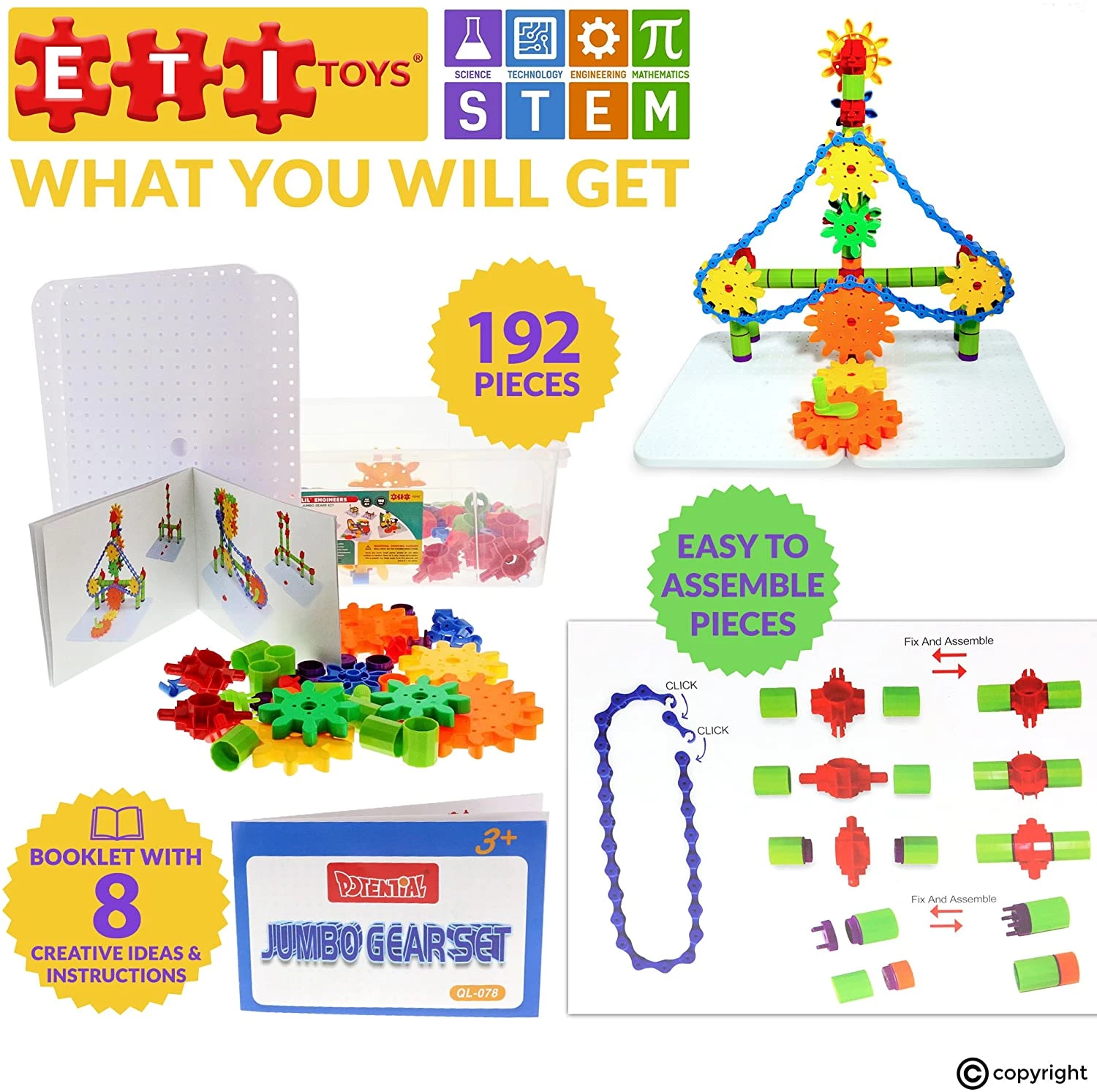ETI Toys, STEM Learning, 192 Piece Jumbo Gears