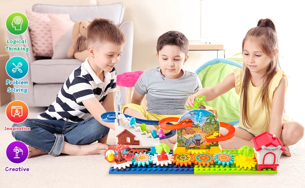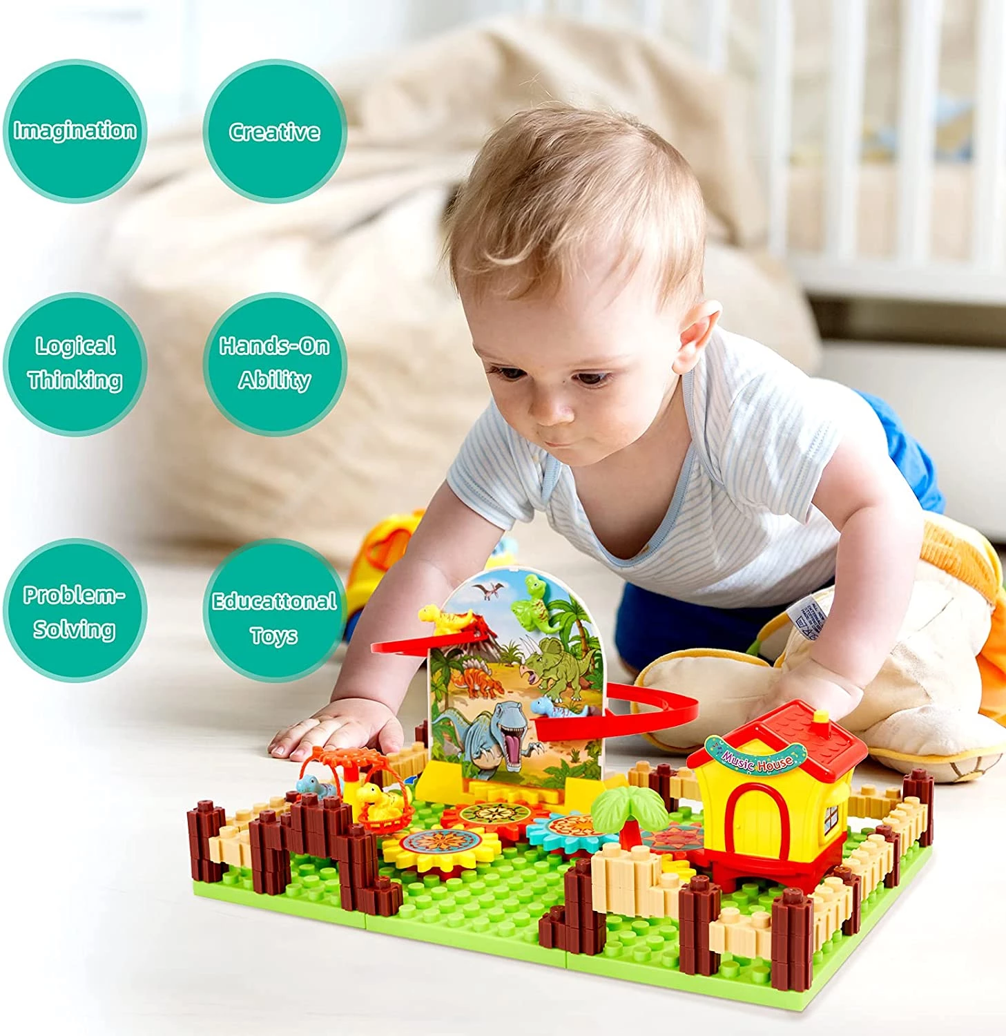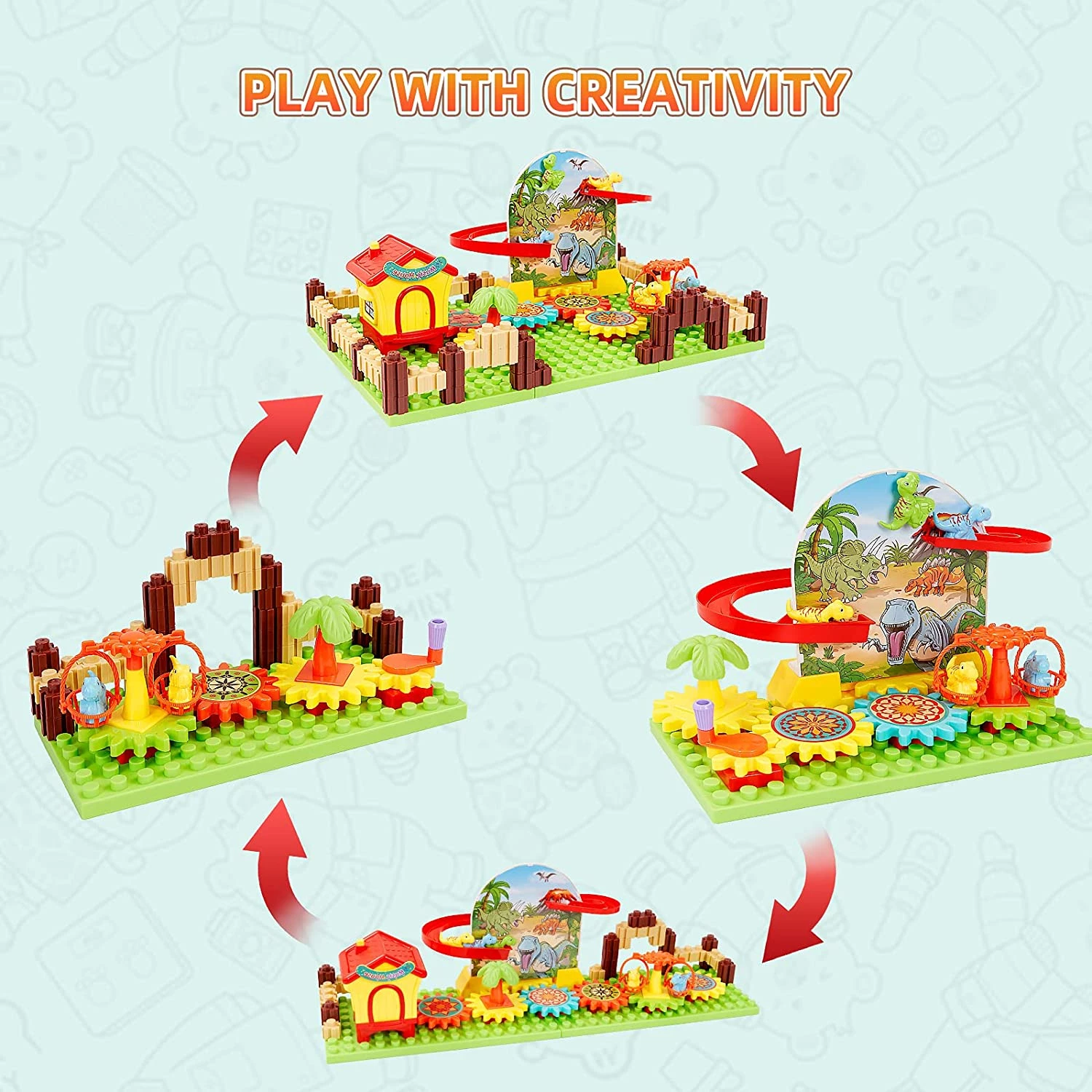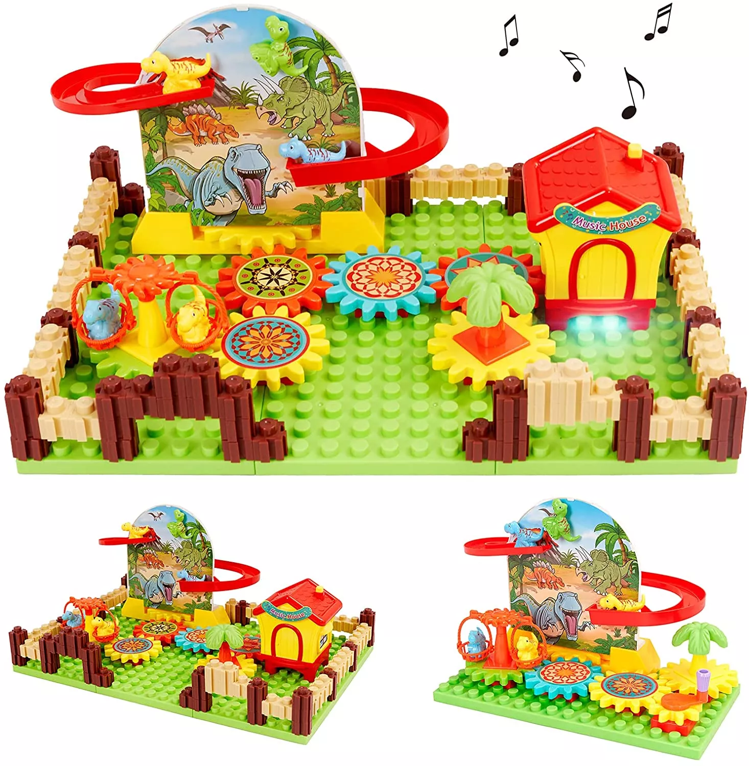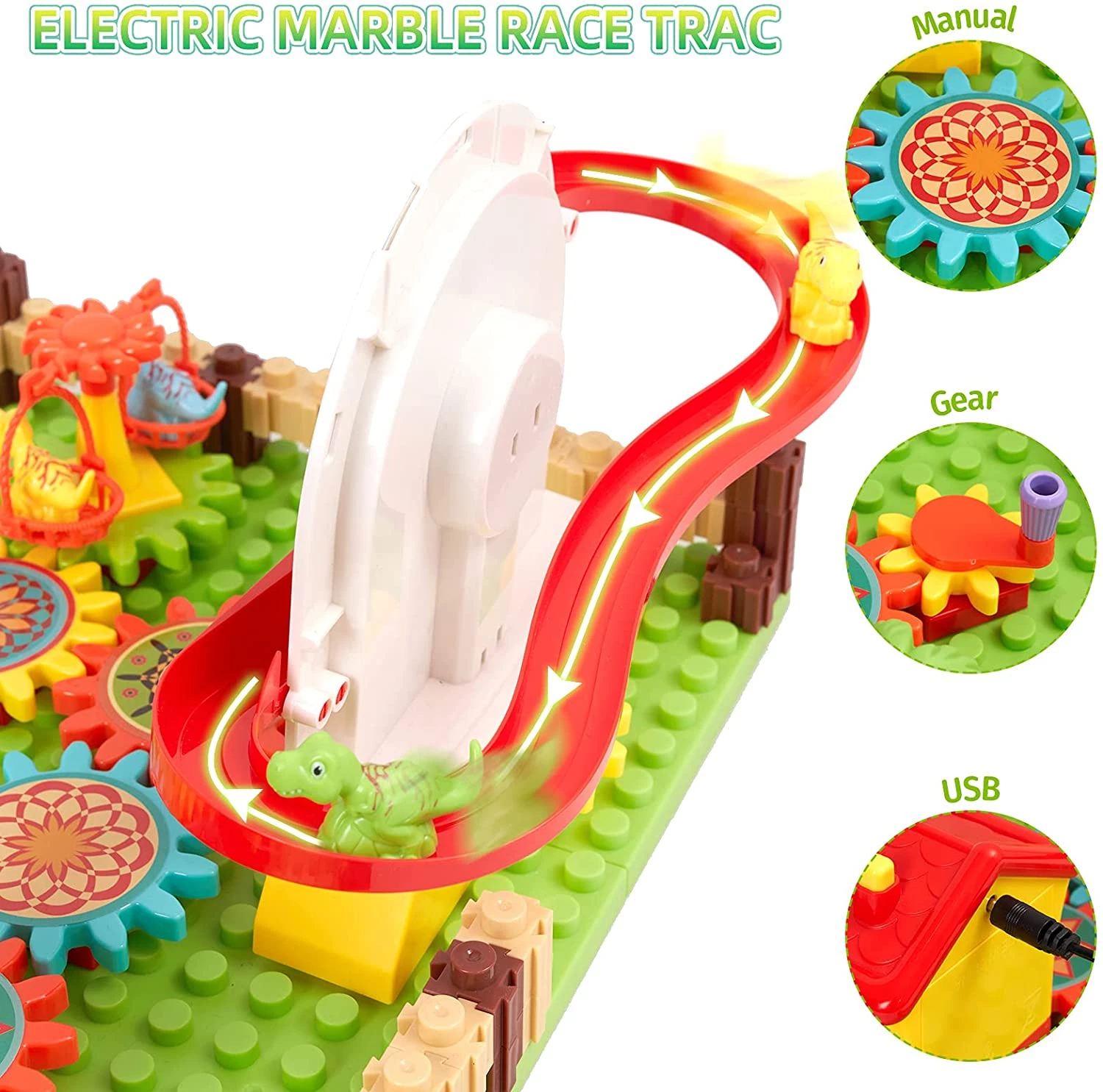 Marble Run Building Blocks Dinosaur Toys with Music Box STEM Educational Construction Toys for Kids 5+