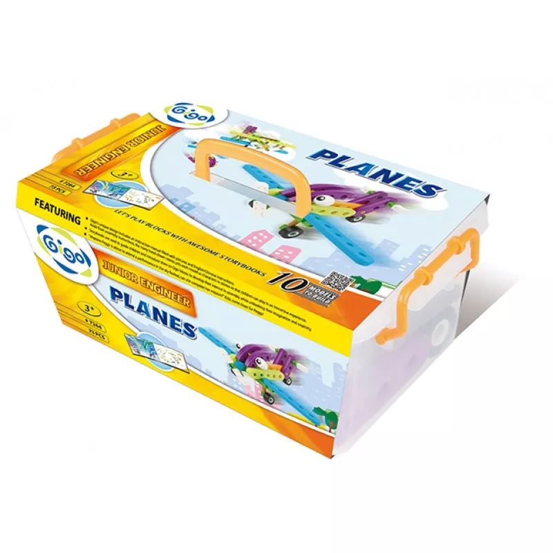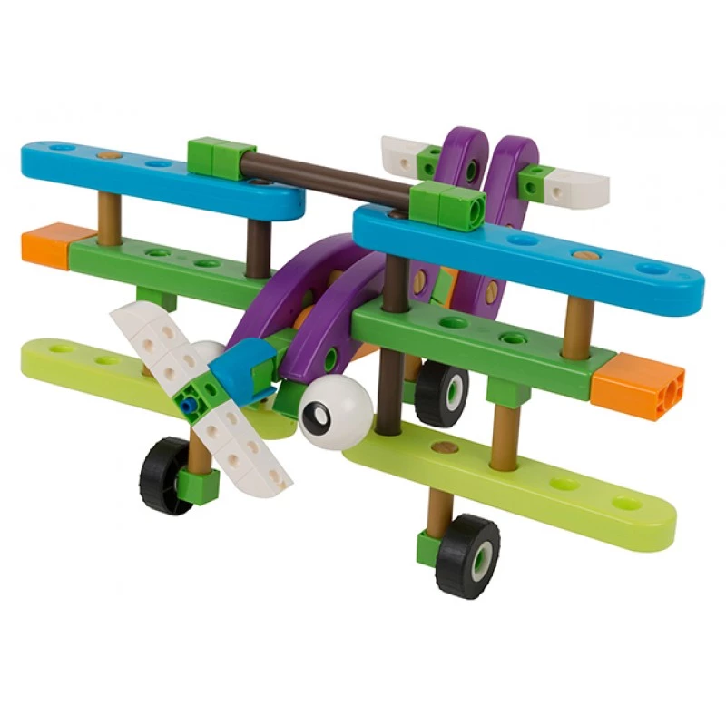 Захоплюючий конструктор для юних інженерів. За інструкцією, яка входить в набір, дитина може зібрати 10 різних моделей літаків. Деталі яскравих кольорів і приємні на дотик. Всі елементи конструктора виготовлені з безпечного матеріалу.