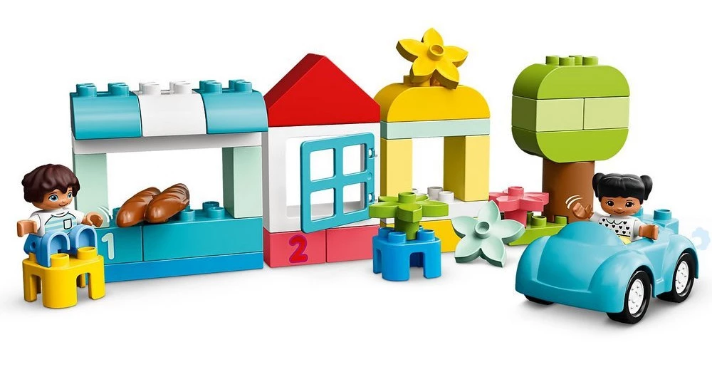 «Коробка з кубиками» — це будівельний набір, призначений для юних будівельників, який допомагає розвивати уважність, моторні навички, фантазію та уяву. Представлений будівельний набір від Lego Duplo відкриває перед маленькими фантазерами дивовижний та багатогранний світ, наповнений ідеями та творчістю. Тут є все необхідне для веселих ігор, у тому числі автомобіль з рухомими колесами, віконце, дах, квіти, фігурки людей та навіть спеціальні блоки для вивчення чисел. Загалом у наборі 65 великих деталей.