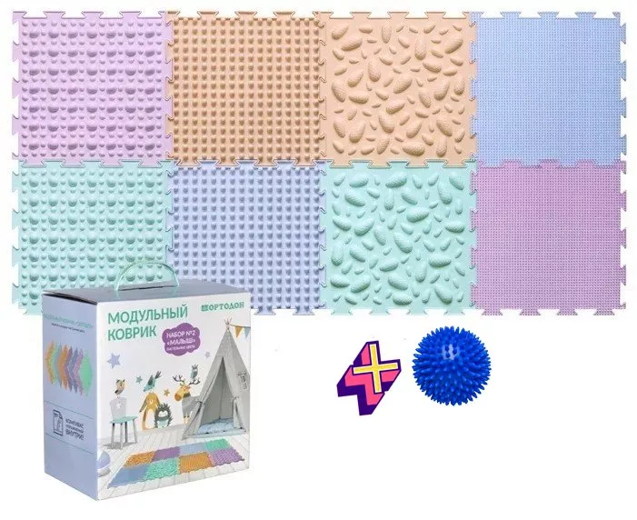 Коврик орто пастельные тона 8 элементов Ортопедический массажный коврик