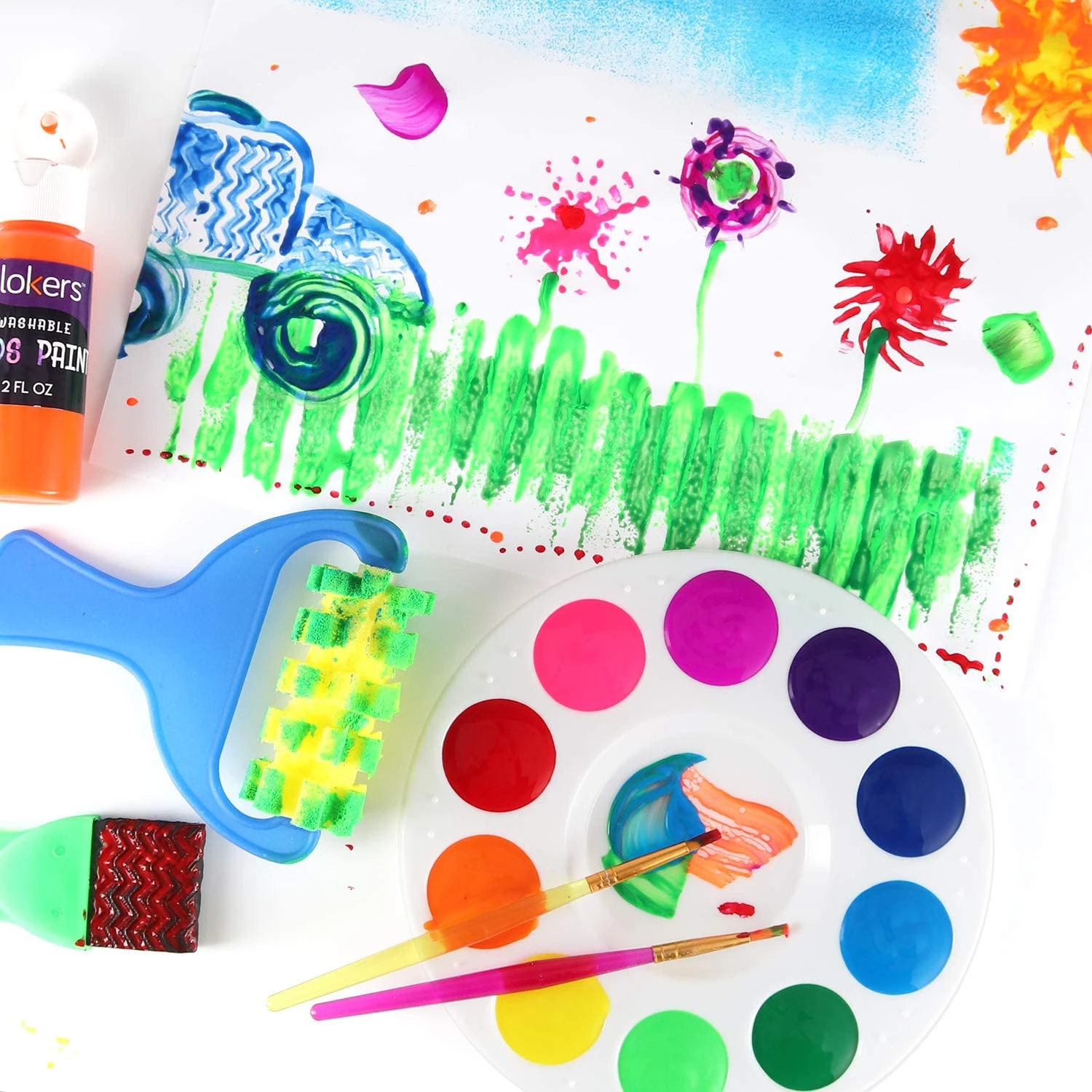 Цей цікавий набір дуже сподобається дитині, який обожнює малювати. Тут є все необхідне, починаючи від фарб і закінчуючи спеціальними пензликами. Всі елементи компактно складаються в спеціальну сумку для зберігання і не займає багато місця. Але найголовніше, фарби дуже легко відмиваються з поверхонь і відпираються з одягу. У наборі 21 пензлик, що дозволяє дитині створювати справжні шедеври і допомагає розвинути дрібну моторику.