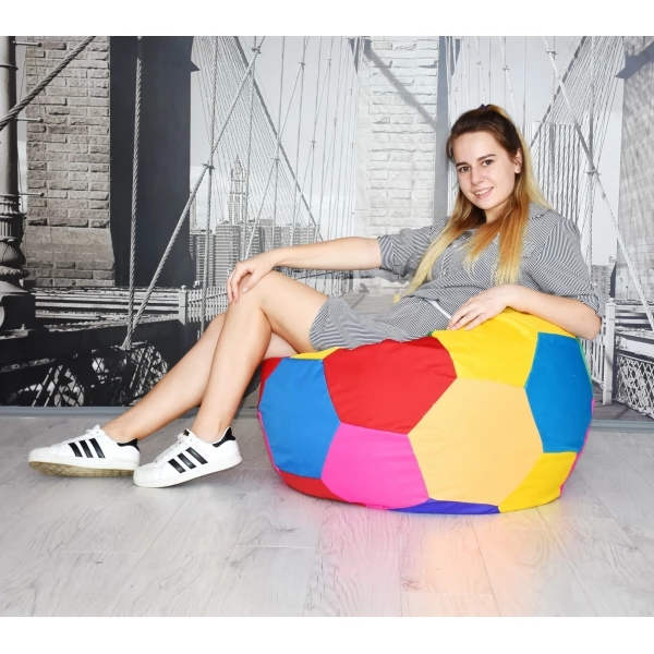 Круглий мішок пуф підійде для ігор, відпочинку, читання книг. Легко переставляється. Є знімний чохол, який можна прати і мити. Є люверс для циркуляції повітря. Може витримати габаритних користувачів. Спроектовано для максимального комфорту дитини.