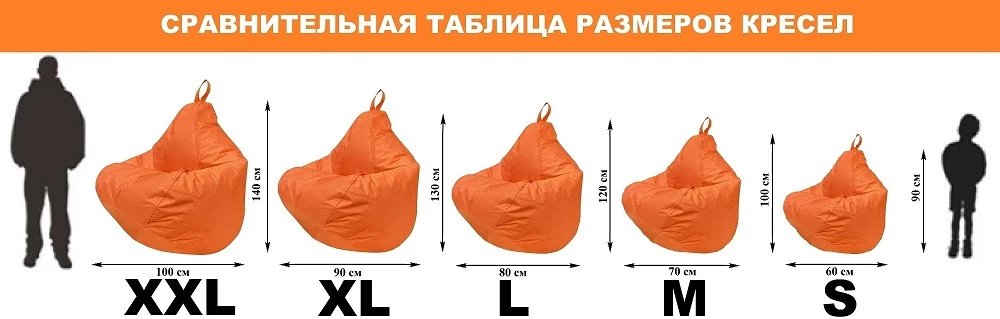 Крісло мішок - це унікальний варіант для використання як в приміщенні, так і на вулиці. Верхній чохол практично не вигоряє на сонці, не розтягується, не вбирає і не пропускає вологу, його можна прати в машинці. Крісло неймовірно легке і затишне, в ньому можна зручно розміститися як дитині, так і дорослому. Будь-яке забруднення легко забирається вологою ганчіркою. Виріб має відмінну циркуляцією повітря, ручкою для транспортування, добре тримає форму і має високу спинку для комфорту хребта.