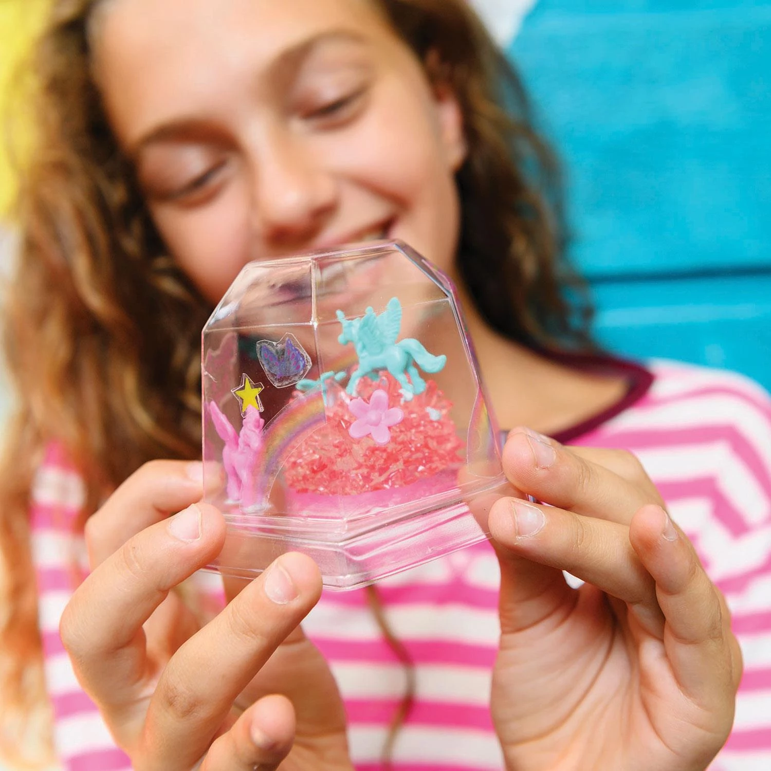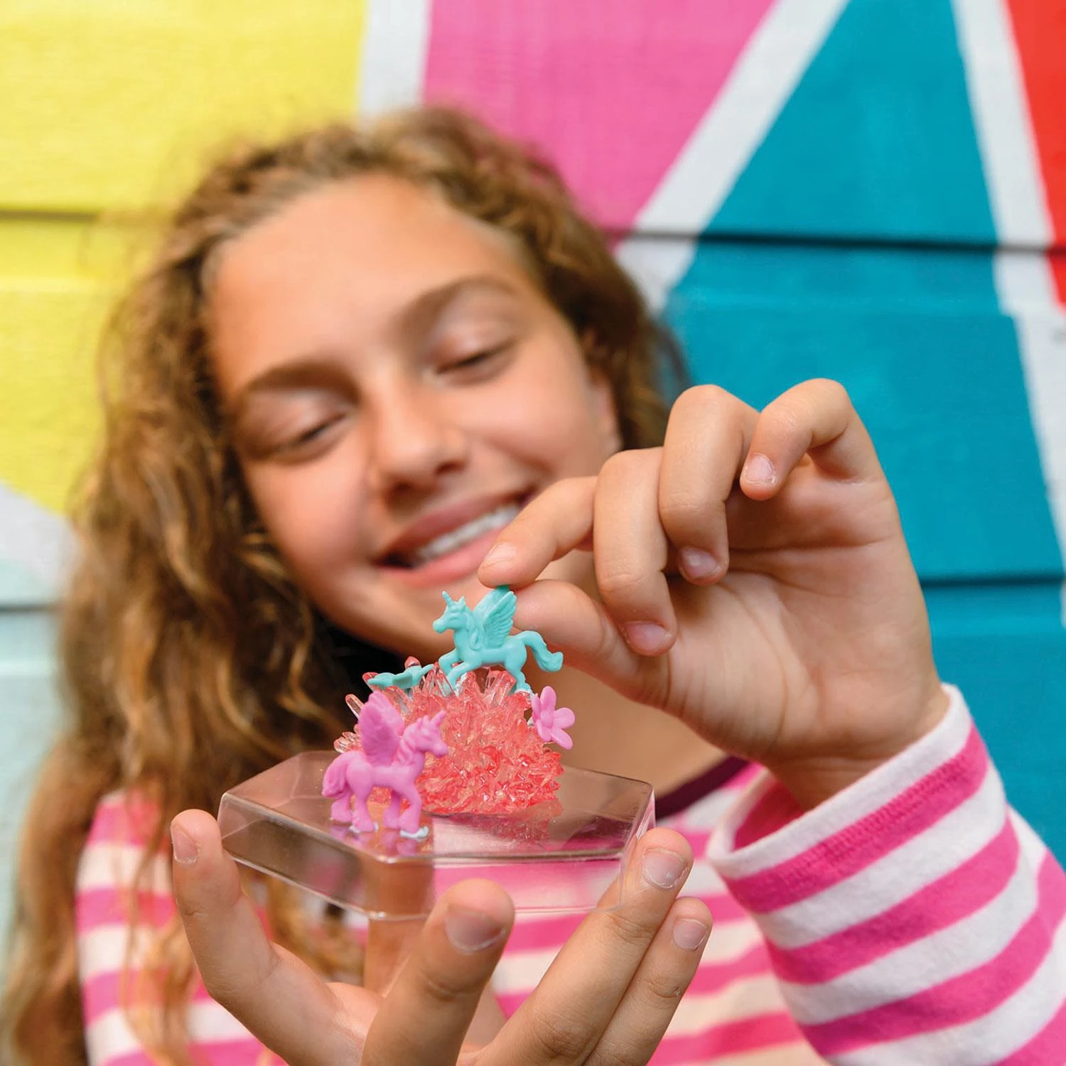 Хотіли б самі виростити справжній кристал у себе вдома? Цей набір створений саме для цього! Необхідно дістати всі складові з коробки і розмістити перед собою. У спеціальній інструкції детально описано всі дії по вирощуванню кристалів, потрібно чітко слідувати кожному з них. Найкраще робити це разом з дорослими. Одержану куля з кольоровими єдинорогами і переливаючими кристалами можна поставити на свій стіл або поличку у своїй кімнаті.