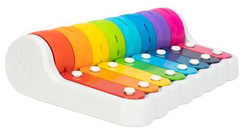 Дуже яскравий і дзвінкий ксилофон відмінно підійде в якості першої музичної іграшки. Усередині клавіатури є відсік, куди складається паличка-молоточок. Є кілька приємних мелодій, які активуються поворотом різнокольорових кілець над брусочками. Щоб витягти звук потрібно постукати молоточком по клавішного ряду. Це хороша розвиваюча іграшка, здатна познайомити малюка з нотами і музичним світом. Ксилофон виконаний з безпечного гіпоалергенного матеріалу.