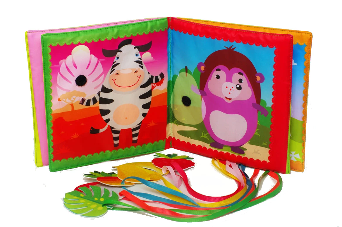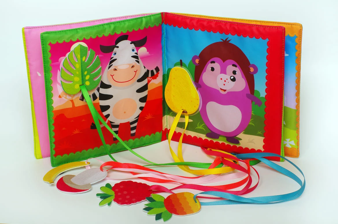 Невеличкі фетрові книжечки користуються величезною популярністю серед малюків та їхніх батьків. Перед вами одна з таких книжечок, створена українським видавництвом «Хмарочос». Малюку пропонується правильно підібрати один з елементів і прикріпити його на сторінці книжки за допомогою липучки. Також можна знайти неправильно прикріплені елементи на сторінках та розмістити їх у потрібних місцях.