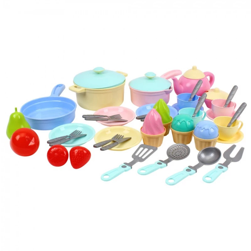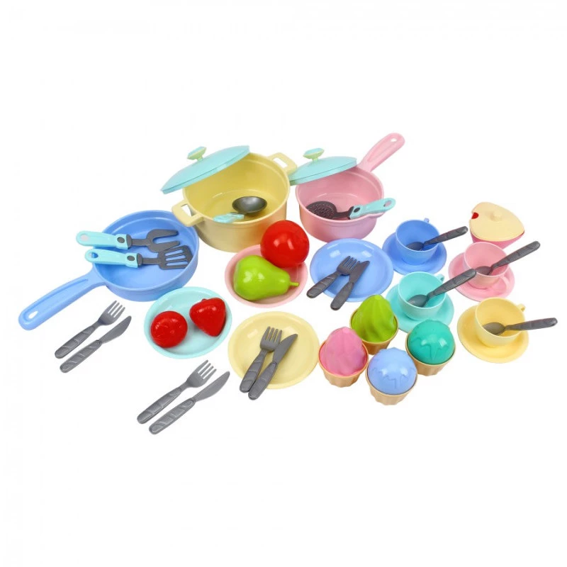 Бажаєте влаштувати святкову сімейну вечерю? З набором іграшкового посуду та кухонних аксесуарів зробити це буде простіше простого! Іграшковий посуд виконаний у ніжних тонах, велика та цікава комплектація приверне увагу дитини до іграшки. Усі предмети, що входять у комплект, виглядають як «дорослі».