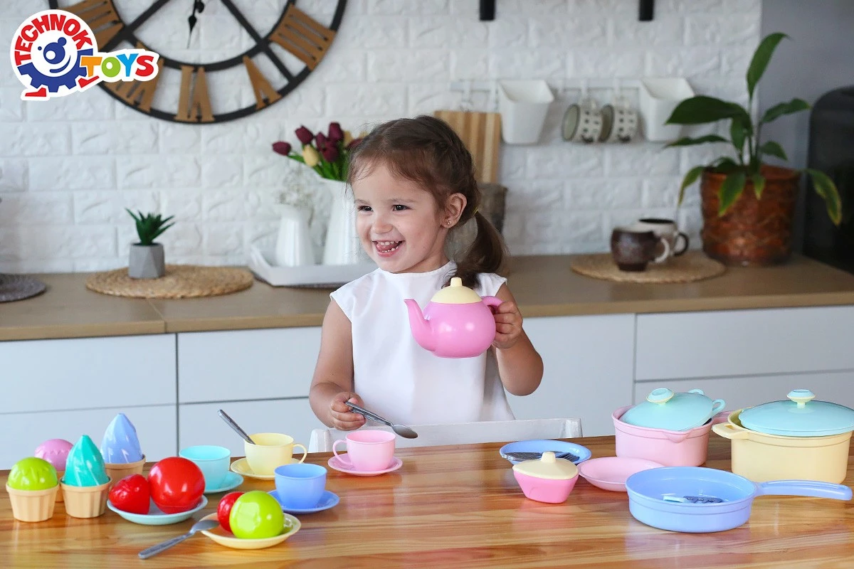 Набір підходить для ігор з друзями. Ігри з кухонними аксесуарами сприяють розвитку фантазії, творчого мислення та дрібної моторики. Іграшковий посуд допомагає сформувати навички приготування їжі та прибирання, вивчити правила поведінки на кухні.