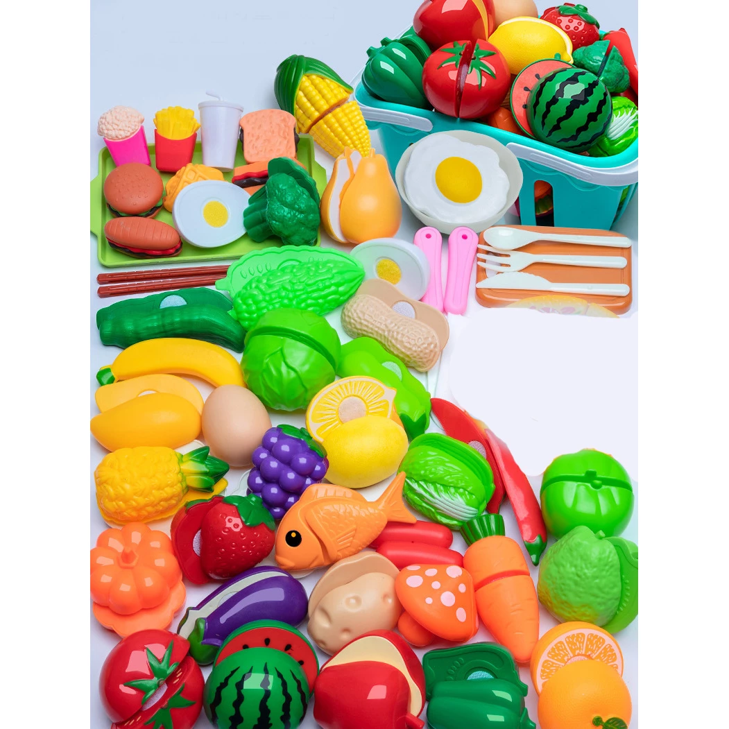 В комплекті є імітація цілого кошика продуктів (фрукти, овочі, ягоди), а також готові страви та інгредієнти, як-от яйця, хот-доги, гамбургери, пончики, картопля фрі та інші.