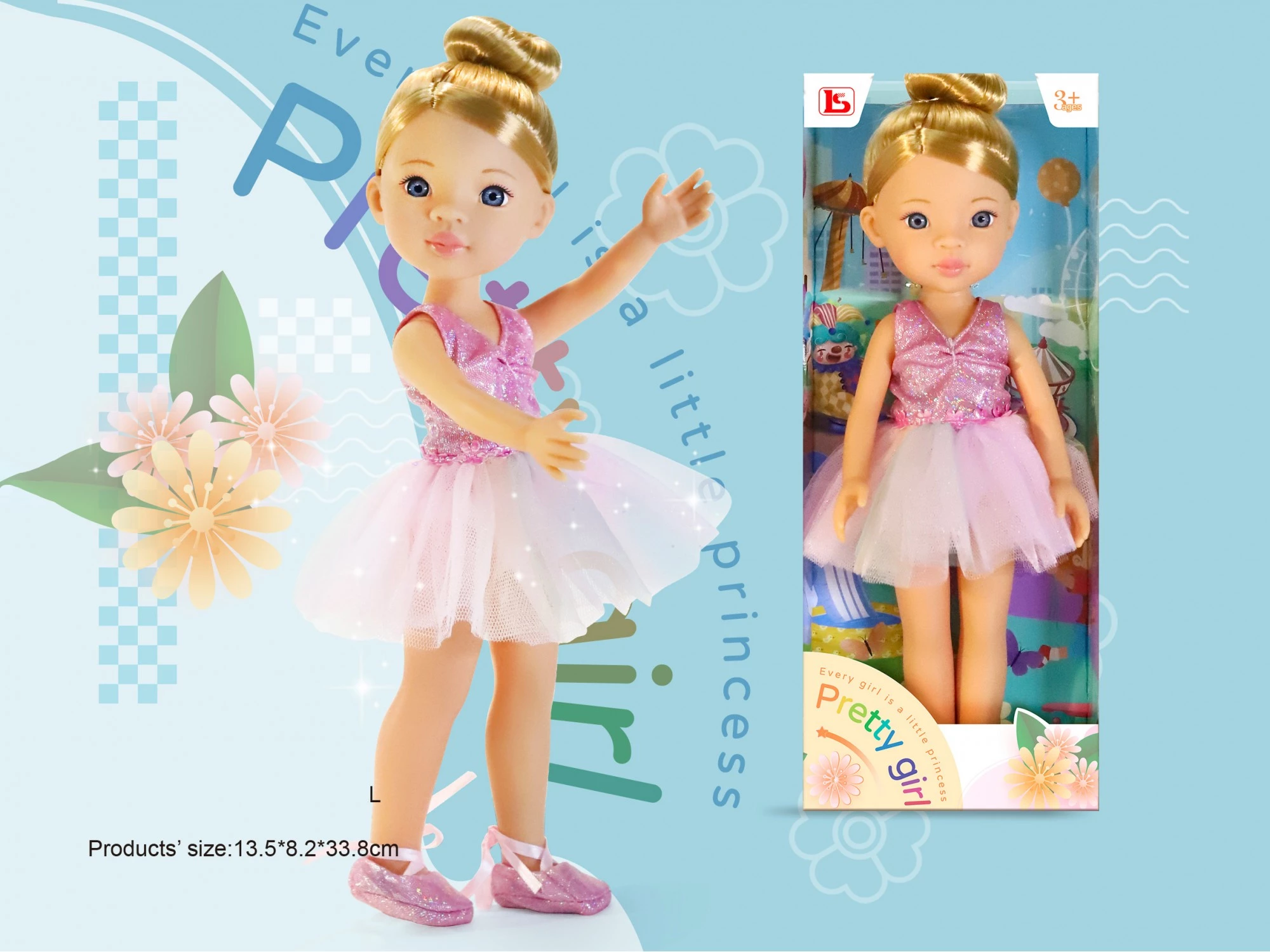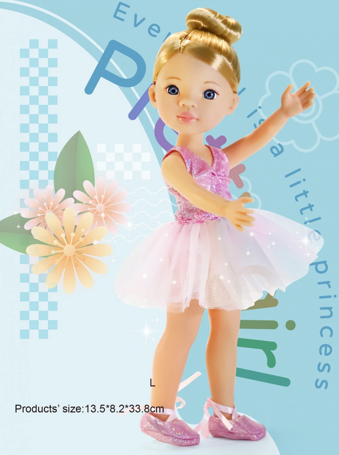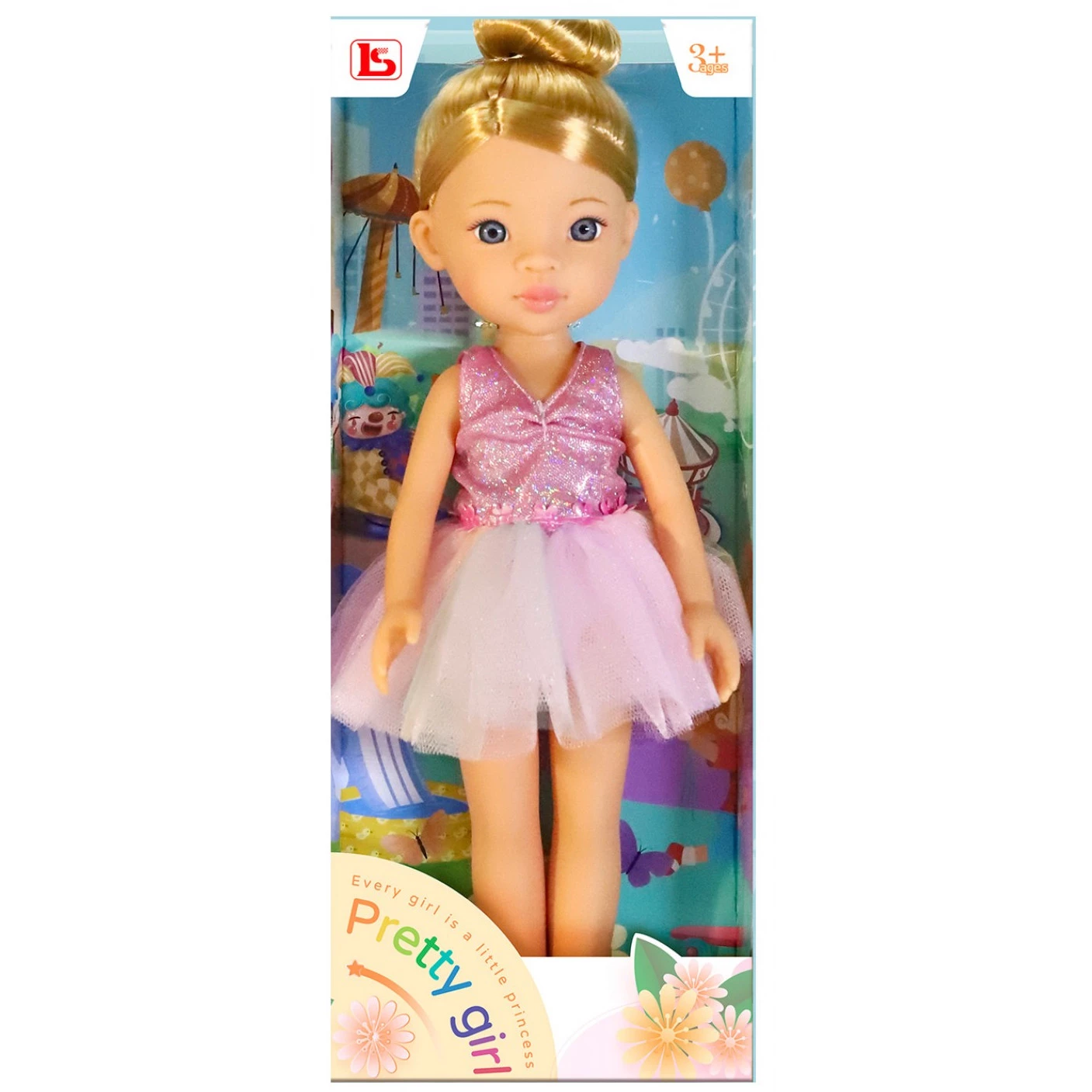 Мила лялька займається балетом і сьогодні має виступ. З такої нагоди вона одягла пуанти рожевого кольору і такого ж кольору сценічний костюм з блискітками. А яка чарівна зачіска у танцівниці! Красиве золотисте волосся зав'язане в пучок, передні пасма акуратно зачесані назад. Ця чудова лялька стане однією з улюблених іграшок вашої доньки!