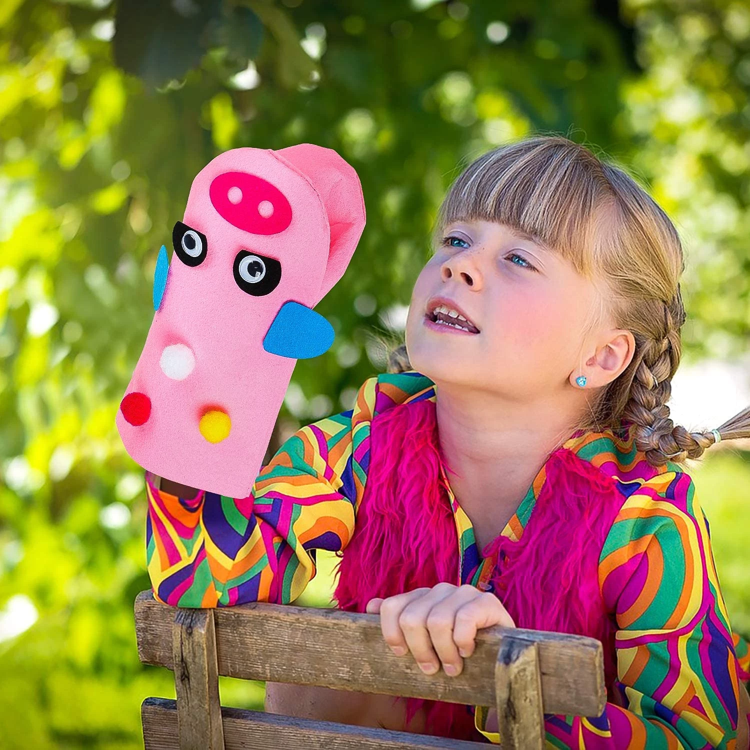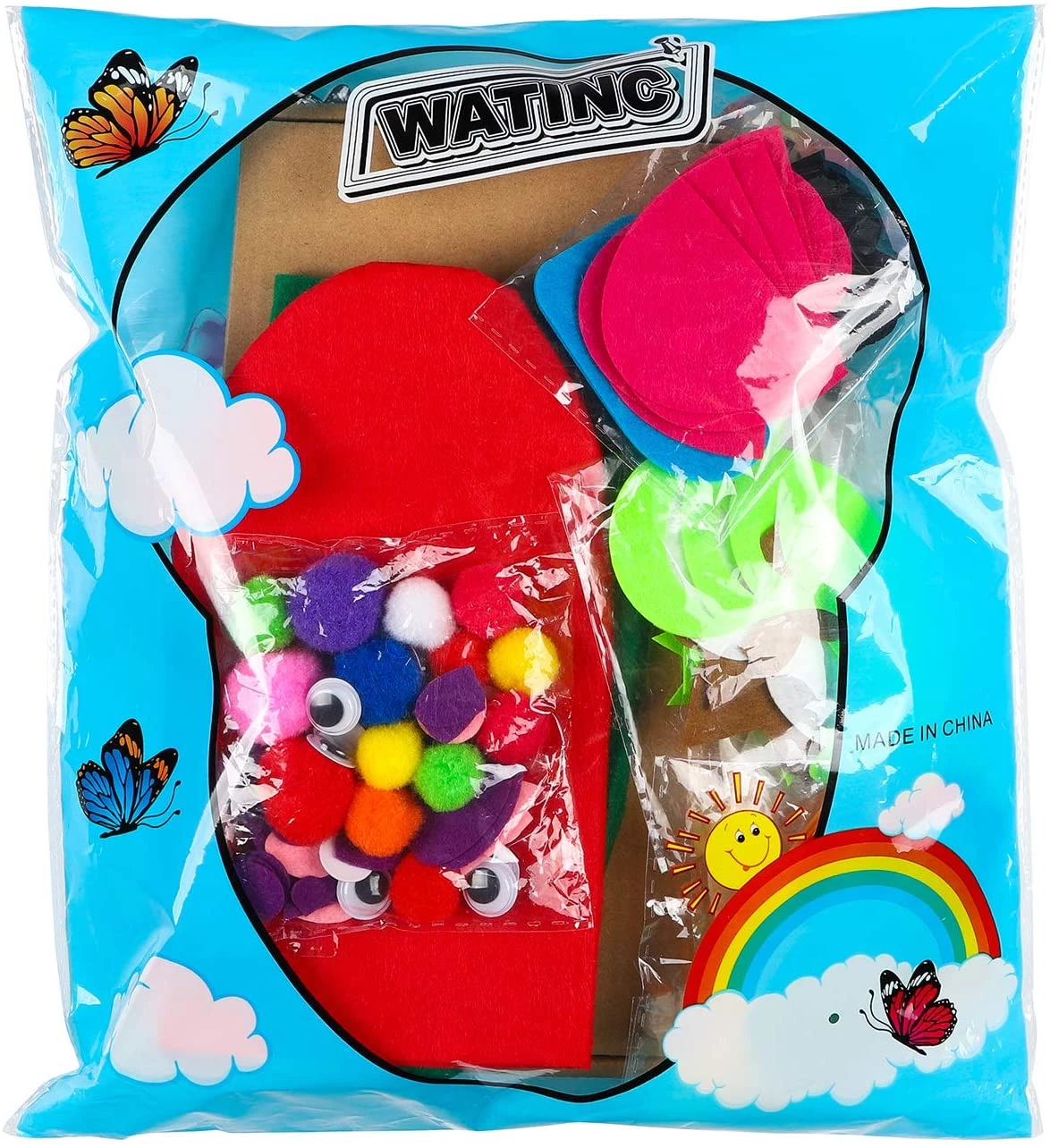 WATINC 6Pcs Hand Puppet Making Kit for Kids Art Craft Felt Sock Puppet Creative DIY Make Your Own Puppets Pompoms