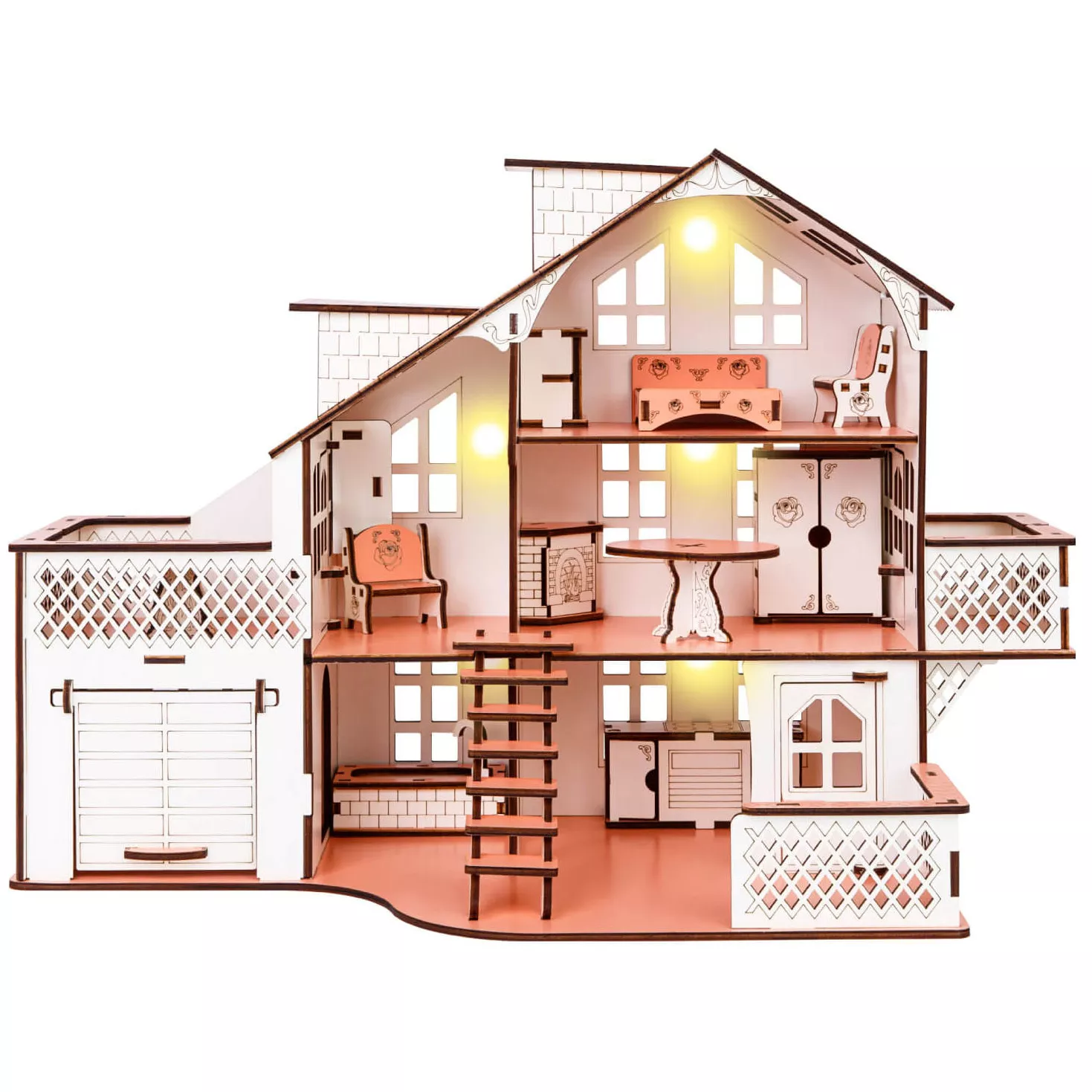 Ляльковий будинок 57х27х35 з гаражем і підсвічуванням