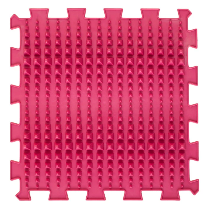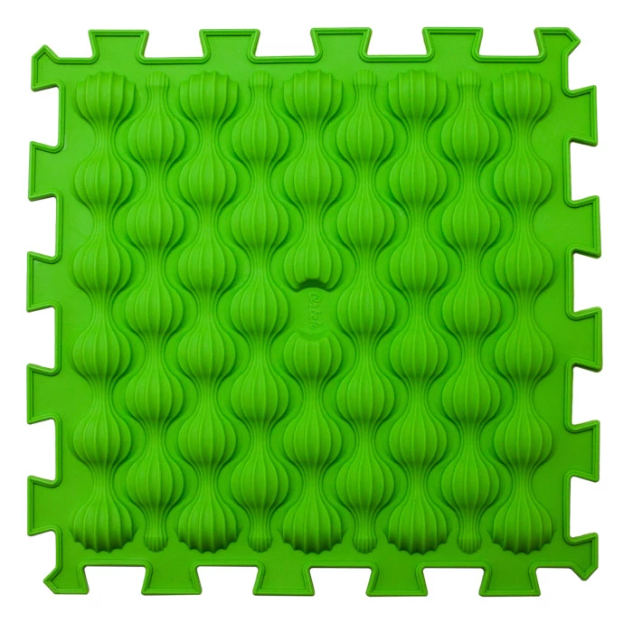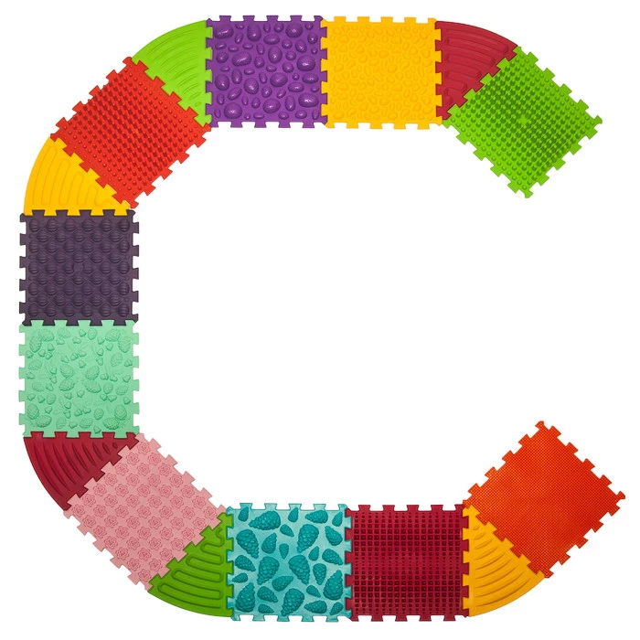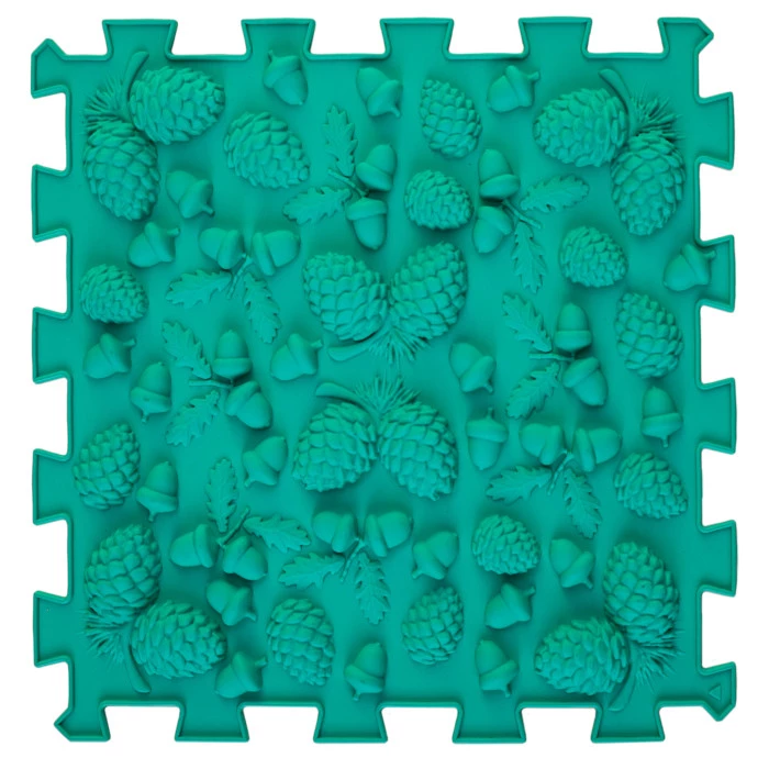 Всі елементи килимка виготовлені з безпечного, гіпоалергенного ПВХ без шкідливих домішок. Завдяки різним текстурам виріб відчувається по-різному. Травка, черепашки, галька, гриби відносяться до більш м'яких пазлів. Башти, їжачки, жолуді - до середніх. Піраміда, шипи, лотос, шишки - до твердіших пазлів. Вплив поверхонь з різною твердістю дає відмінний масажний ефект, тренує стопи, сприяє сенсорній інтеграції.