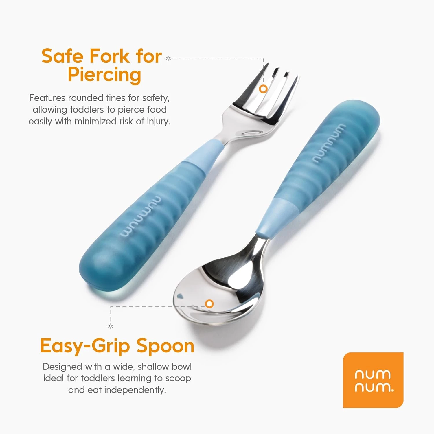Секрет цих столових приборів в унікальних товстих, контурних силіконових ручках. Вони не містять бісфенолу A і забезпечують нековзне і зручне захоплення, що дозволяє малюкам краще контролювати прибори. Це знижує стрес під час їжі і прищеплює впевненість у своїх силах, роблячи кожен прийом їжі захопливим та пізнавальним процесом. Цей набір є ідеальним подарунком, який підтримує ранній розвиток.