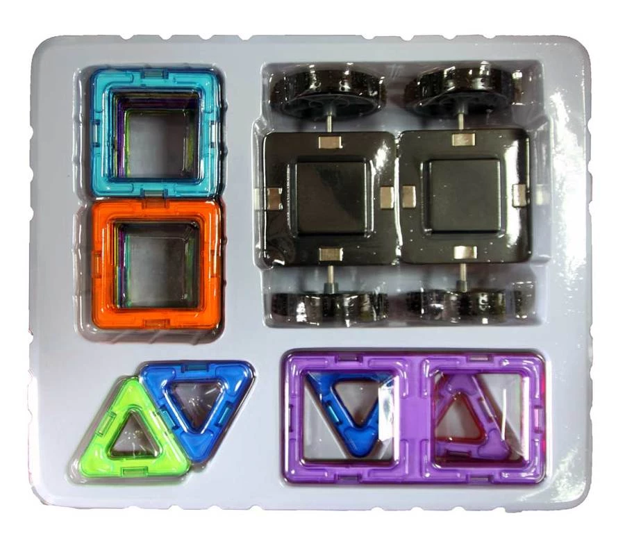 По-перше, через потужний магніт деталі можуть скріплюватися під абсолютно різними кутами. По-друге, кожен виріб буде абсолютно стійким і не завалиться під час активної гри. А по-третє, кожна деталь дуже яскрава, виконана з якісного пластику, а, значить, всі вироби будуть такими ж яскравими! Втім, саме таким і повинне бути життя у дитини - цікаве, веселе і яскраве!
