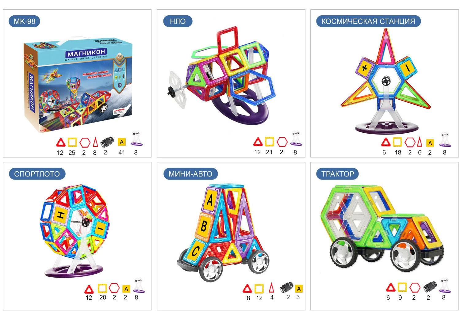 Створювати власні моделі автомобілів, тварин, будівель, атракціонів і бойових машин! Звучить заманливо, чи не так? А сам процес ще більш захоплюючий - створювати вироби за допомогою магнітного 3Д конструктора Магнікон на 98 деталей дуже просто і цікаво: кожен елемент з'єднується з іншим за допомогою сильних магнітів, які міцно утримують деталі між собою.