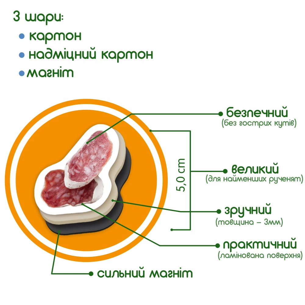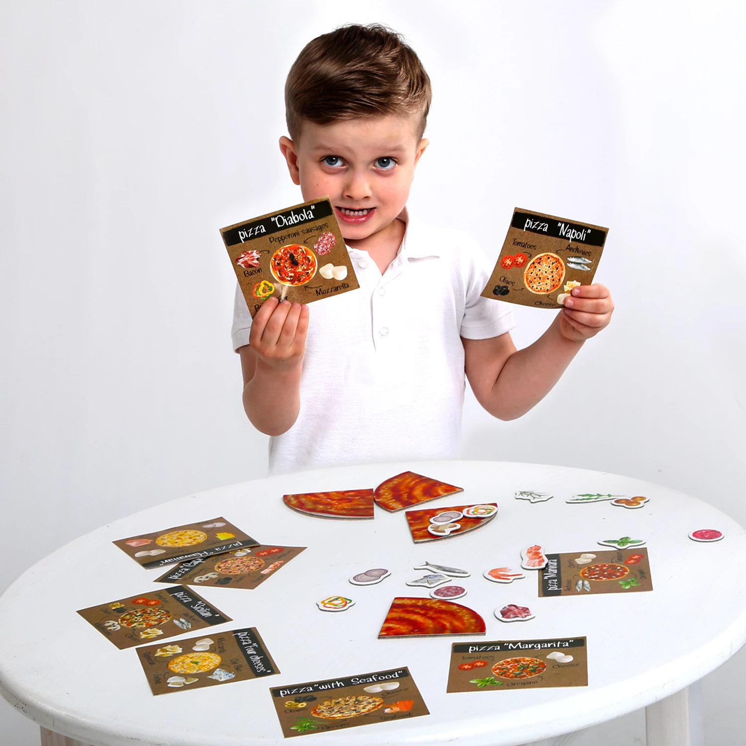 Магнітні основи для піци міцні, їх зручно тримати в руках. На них кріпляться магніти-інгредієнти. Піцу можна «готувати» за рецептами, а можна виявити фантазію та уяву, і створювати авторські піци.