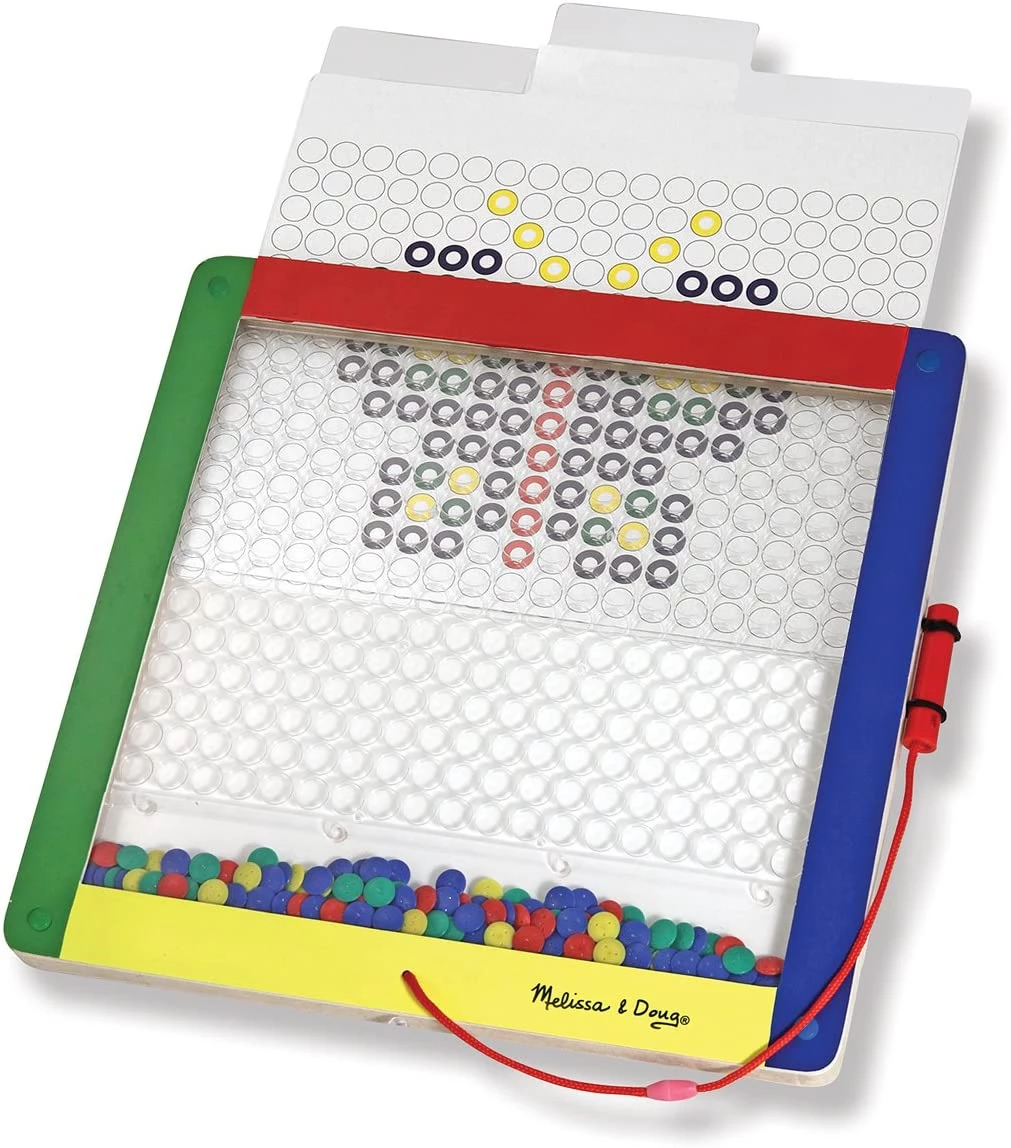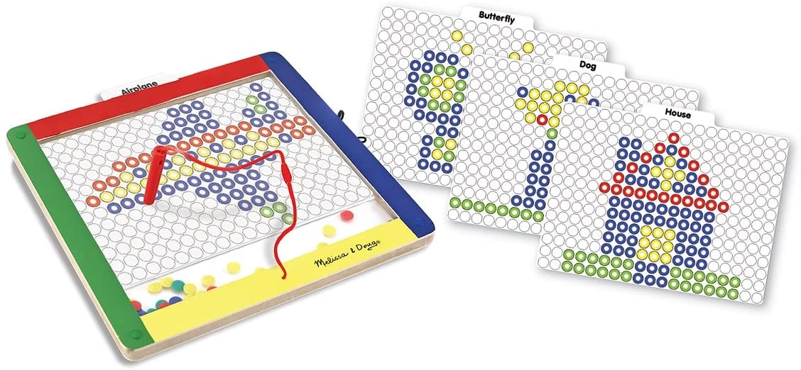 Це дуже компактний магнітний набір призначений для складання красивої картинки з намагнічених фішок. Можна збирати зображення за картками, що йдуть в комплекті. Фішка притягуються до стилуса, таким чином їх потрібно розміщувати у відповідні осередки. Планшет виконаний з якісних матеріалів, тому може прослужити довгий час. Дуже добре підходить для ігор в дорозі, так як фішки весь час знаходяться під склом і не розсипаються. Це хороший подарунок на будь-яке свято.