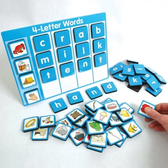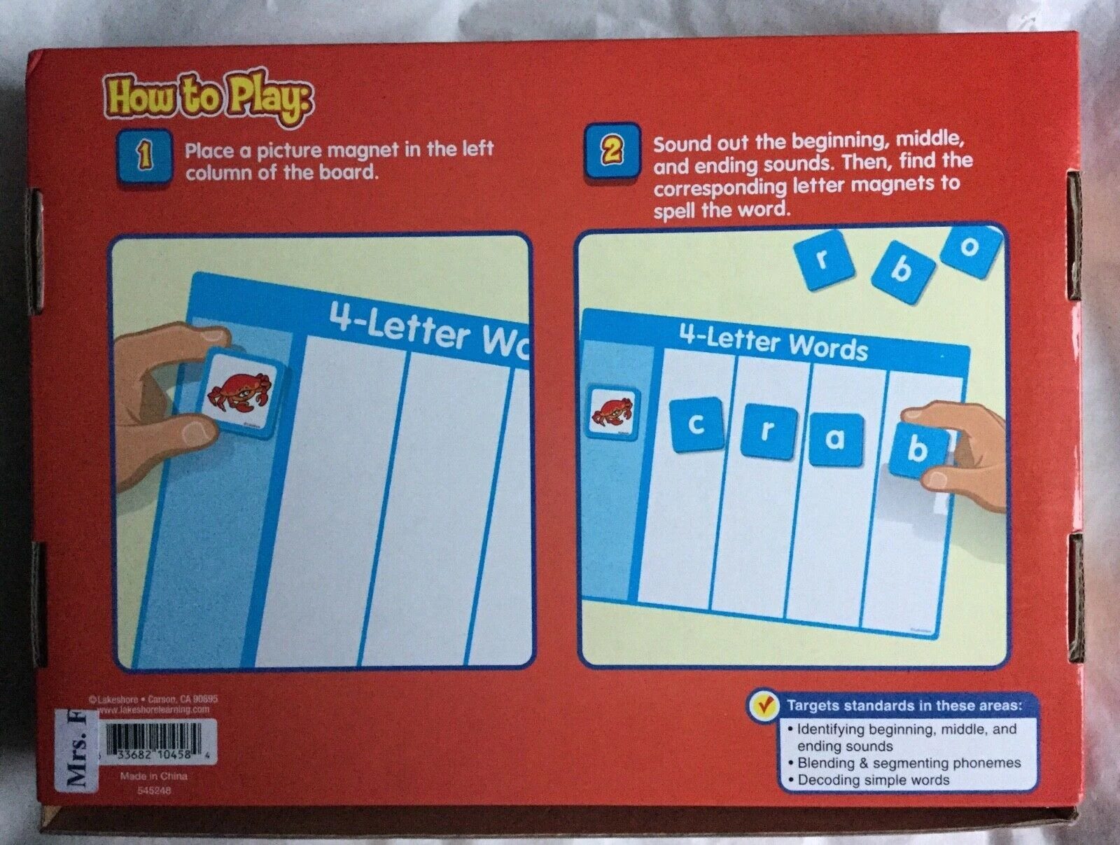 З цим магнітним набором літер і картинок, діти вчать нові слова, складаючи їх на магнітній дошці. Потрібно вибрати магніт картинку і помістити його на магнітну дошку. Дитина повинна назвати слово і правильно викласти його на магнітній дошці. У наборі є літери для створення 36 різних слів.
