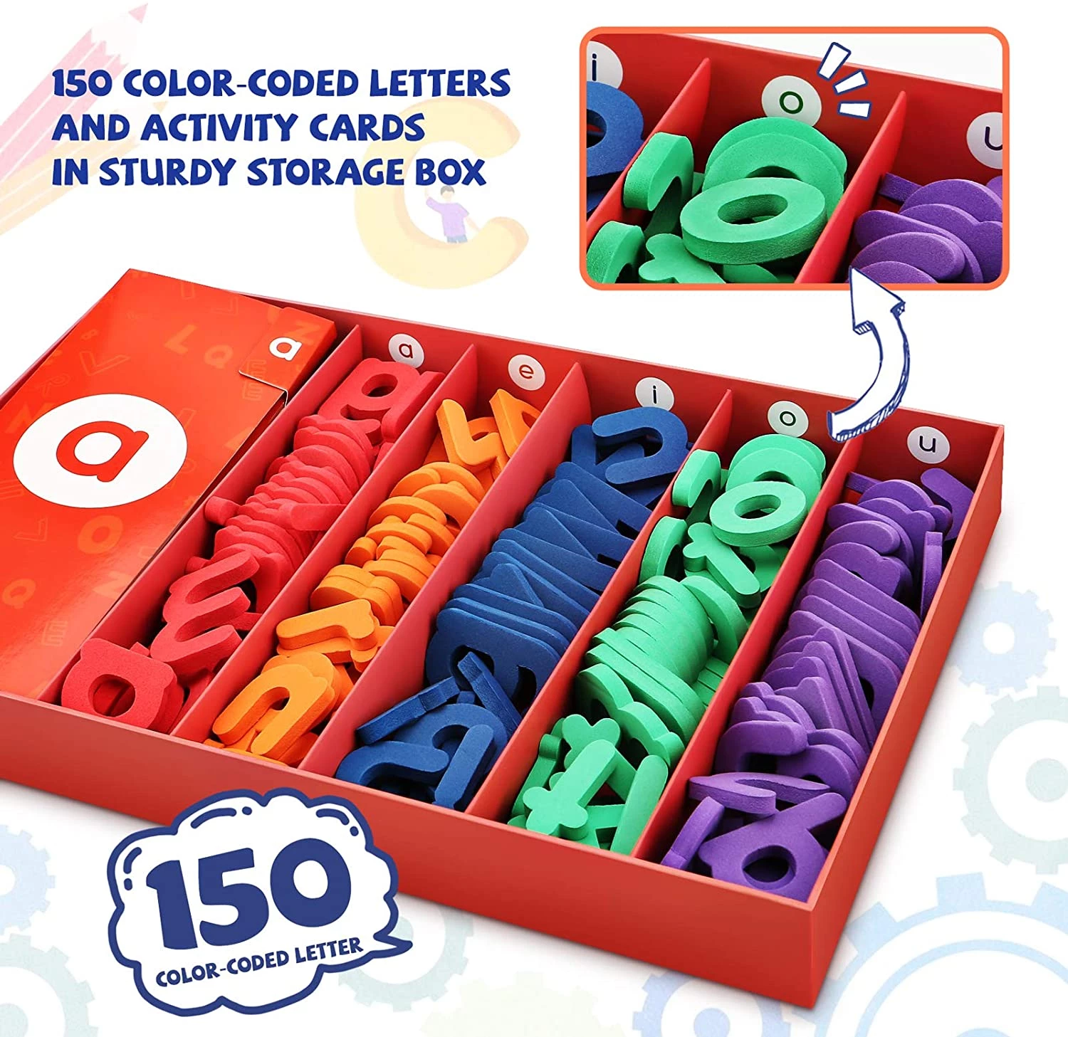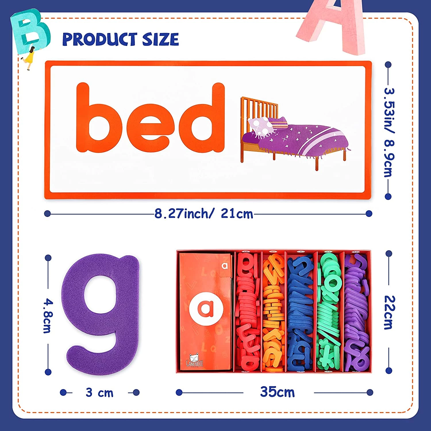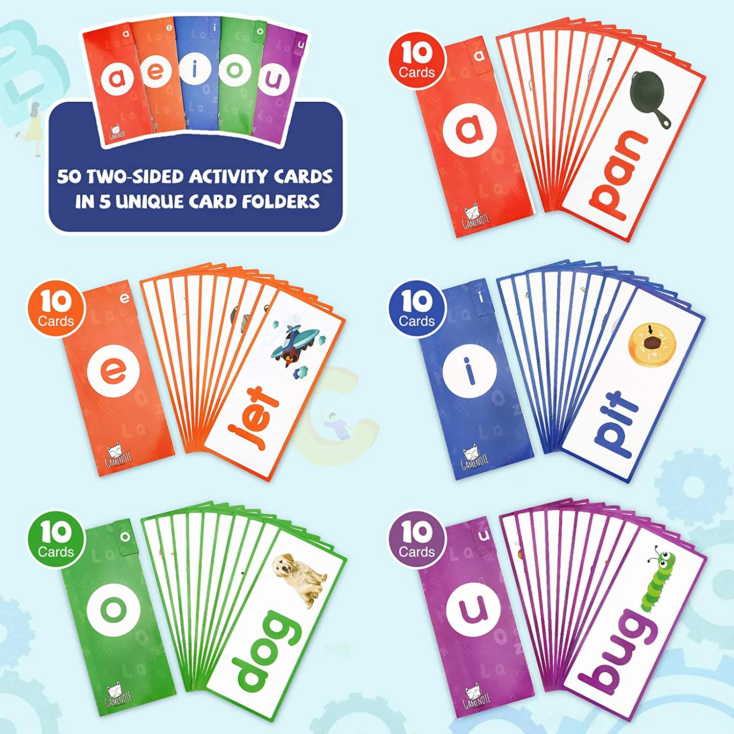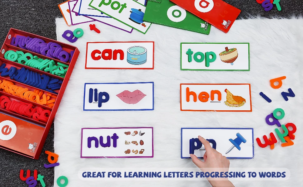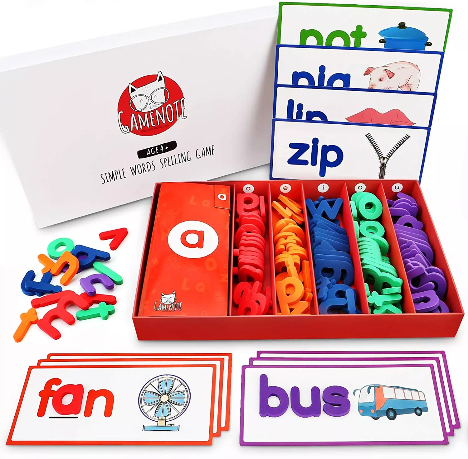 GAMENOTE See and Spell Learning Toy - Matching Letter Game CVC Word Builders Kindergarten Preschool Learning Toys (Include 50 Flash Cards & 150 Letters)