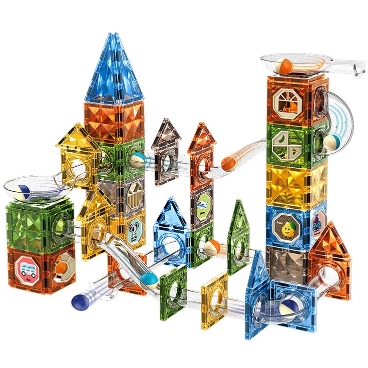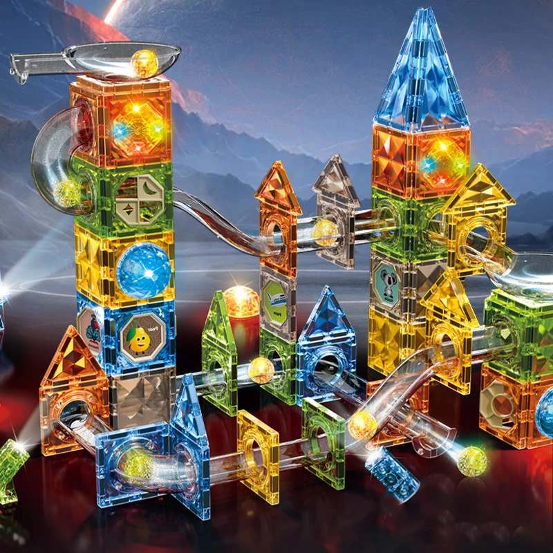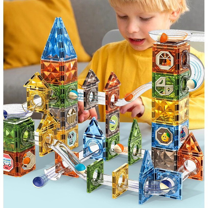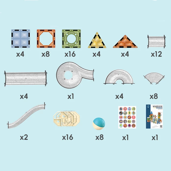 Магнітний конструктор у вигляді великої естакади з тунелями містить в собі чотири галузі знань: інженерія, математика, наука і технологія. Зібрати конструкцію можна самостійно, а можна за допомогою інструкції, що додається. Комплект складається з 91 різних деталей, легко з'єднуються між собою. Дитина зможе познайомитися з особливостями створення складних споруд і буде з цікавістю і захопленням спостерігати за скочуються кульками.