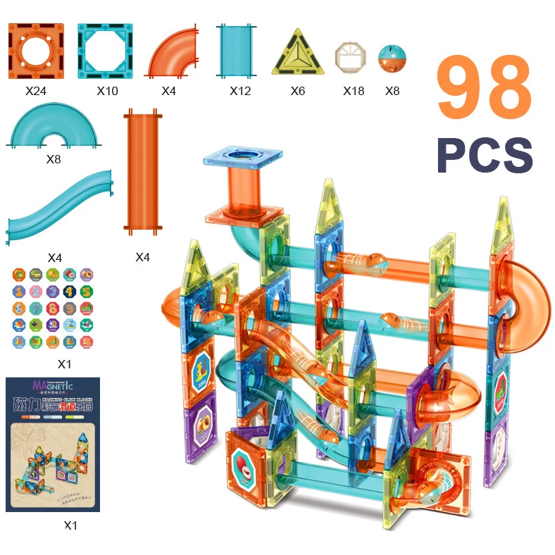 HOMOFY Magnetic Tiles 98Pcs Pipe Magnetic Blocks for Kids 3D Magnetic Building Blocks