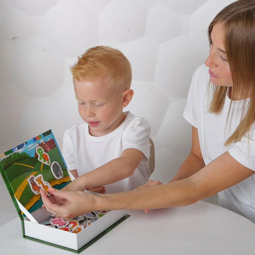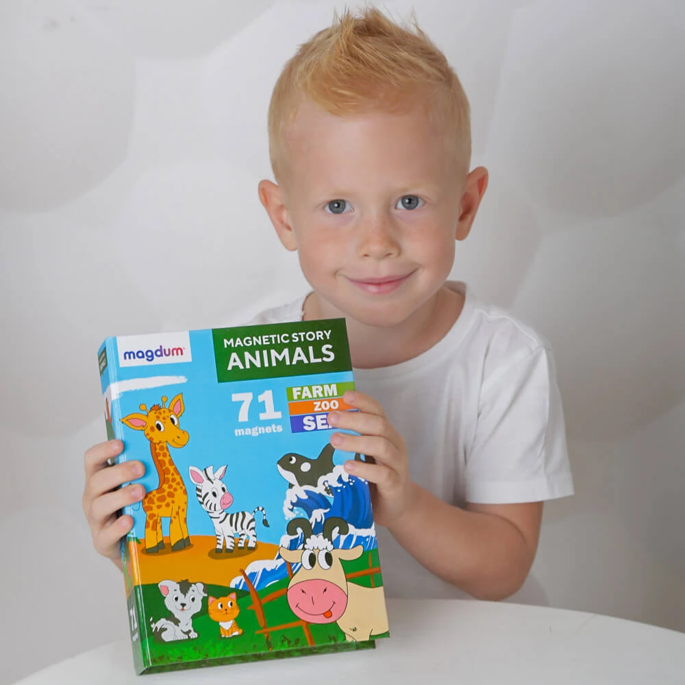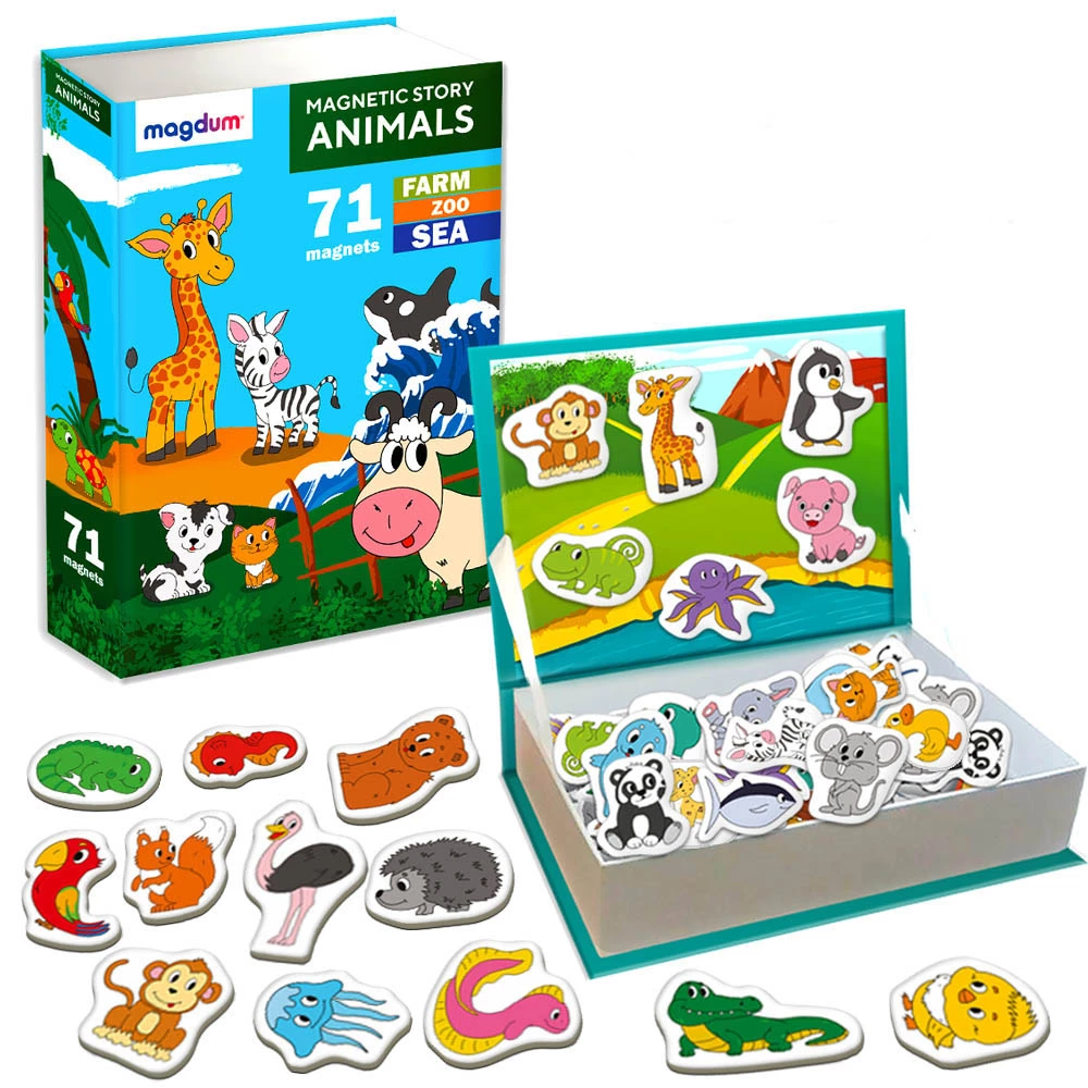 Діти люблять вигадувати всілякі ігрові сюжети, а значить, цей набір магнітів стане чудовим подарунком для маленьких фантазерів. У яскравій коробці-книжці малюк знайде 71 магніт, а сама коробка послужить ігровим полем.