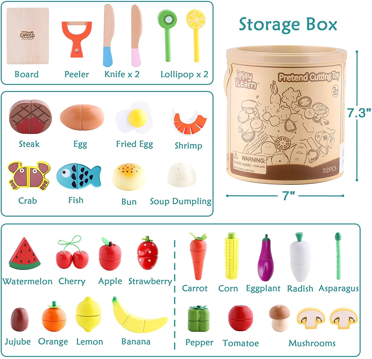 iPlay, iLearn Wooden Cutting Play Food Toy
