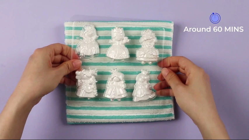 Дотримаючись інструкції, потрібно розчинити пакетики з гіпсом в воді в зазначених пропорціях. Добре вимішати і залити у форми з набору. Після затвердіння дістати вироби і просушити. Коли фігурки висохнуть, можна приступати до творчості. Красиво розфарбувати і наклеїти шпильки або магніти. Прикраса або магнітик готові!