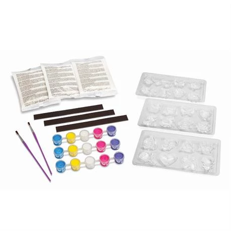 Прикрасьте холодильник оригінальними ексклюзивними магнітиками. Всього в наборі 24 різні форми, і матеріал для створення більш 30 магнітів. Є фарби та пензлики, щоб розфарбувати магнітики.