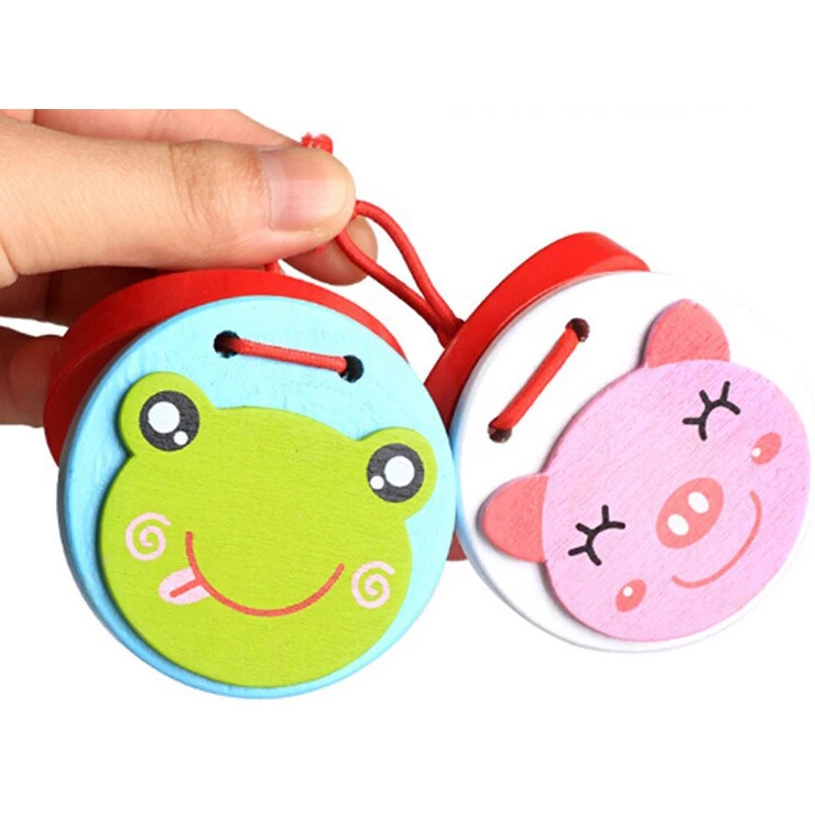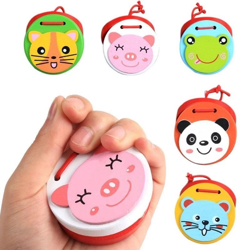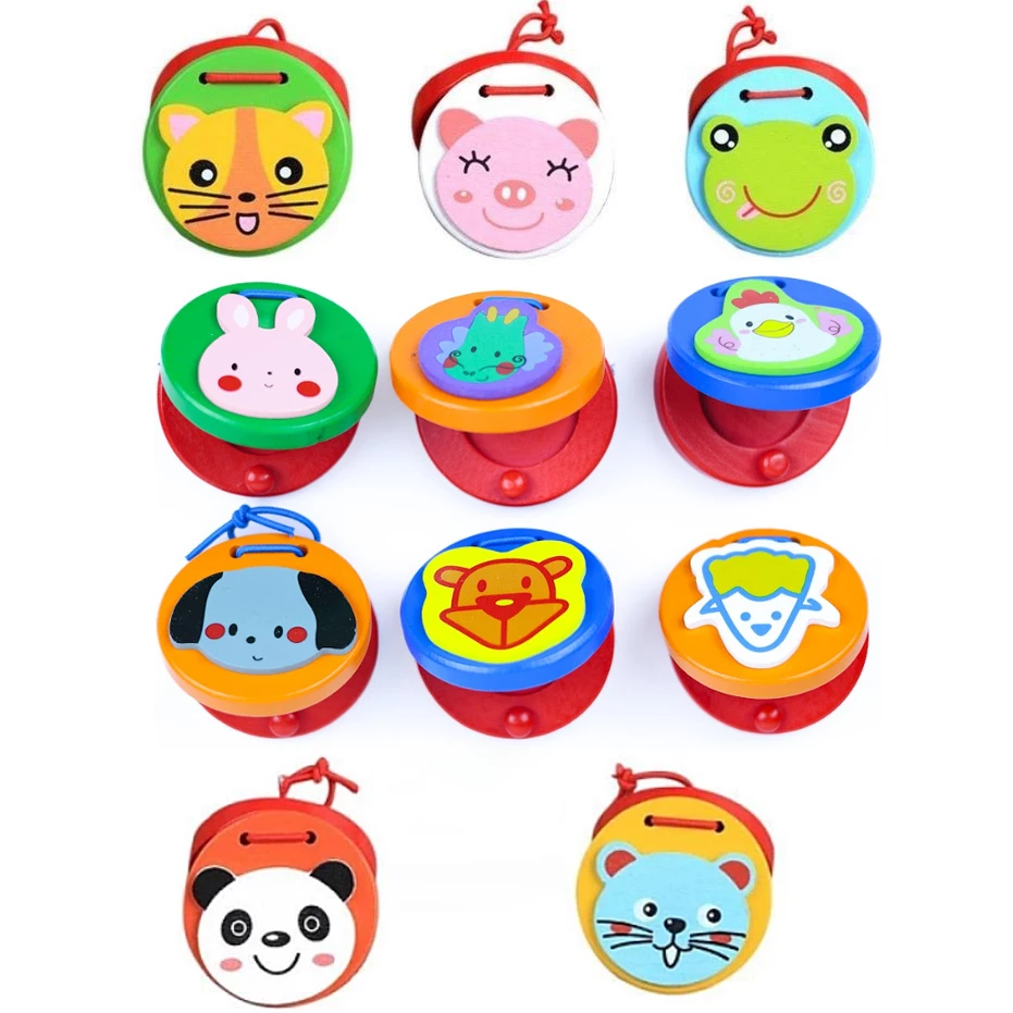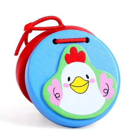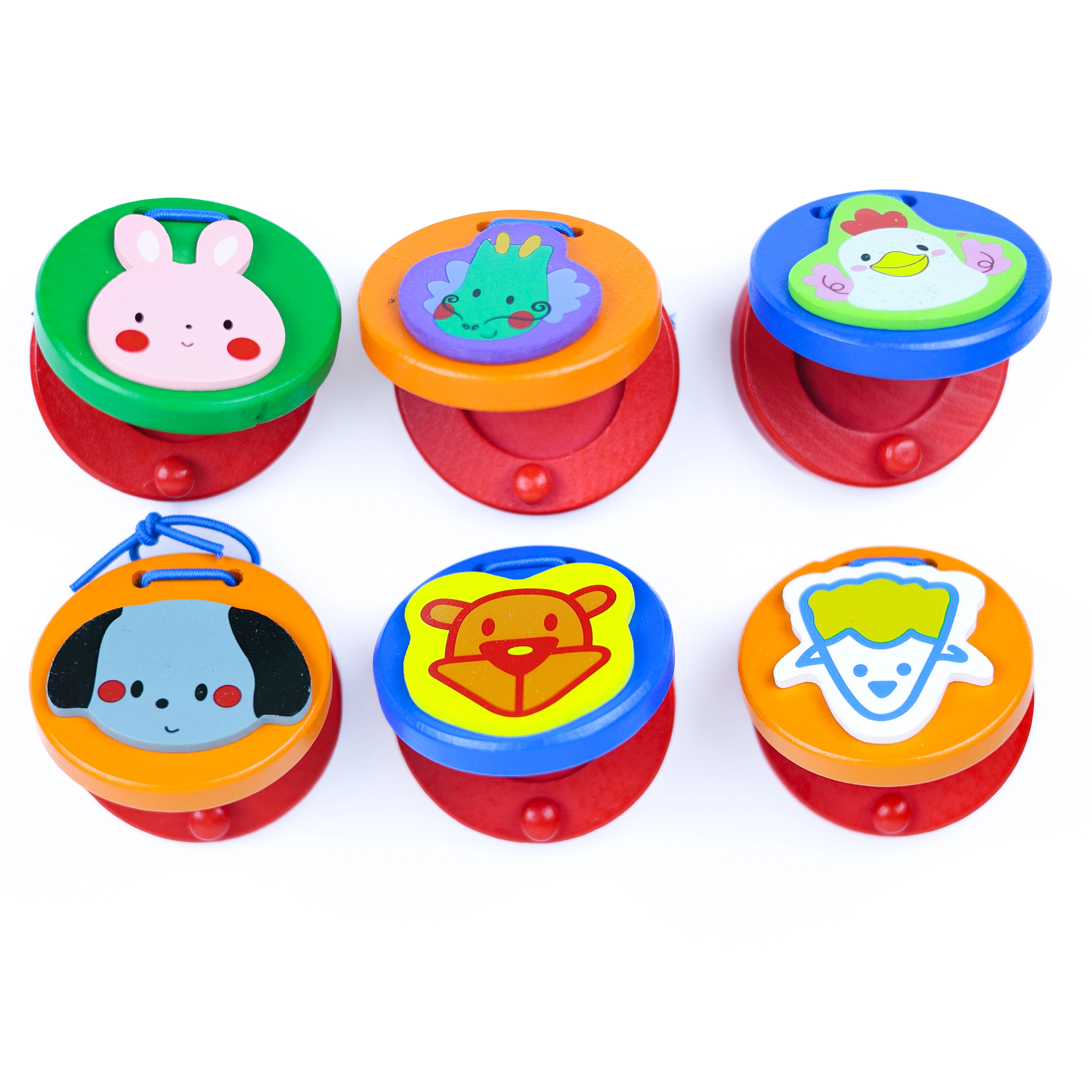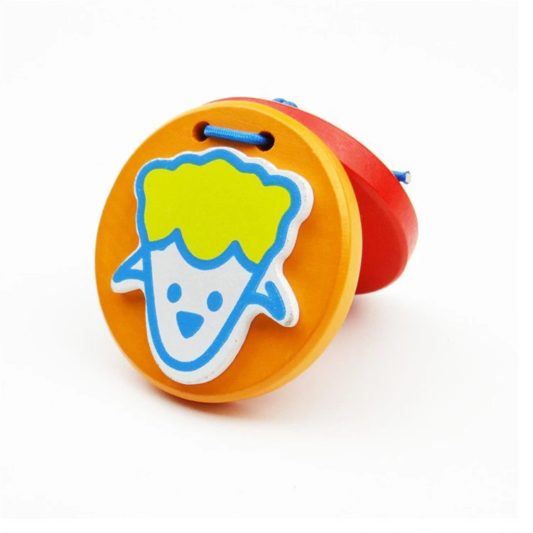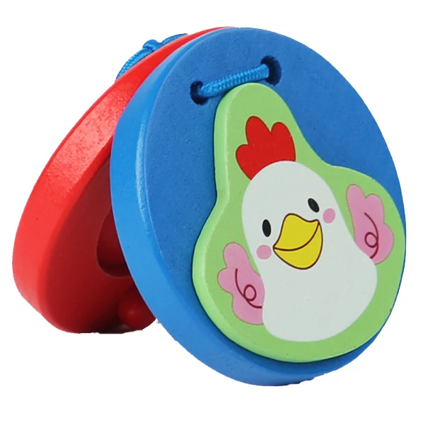 Яскрава маленька кастаньєта знадобиться в розвитку у дитини слухового і зорового сприйняття. Звук формується при натисканні на верхню частину, так як вона ударяється об нижню. Іграшка дуже компактна, її легко взяти з собою в дорогу або на прогулянку. Дуже часто кастаньєти використовують в якості брязкальця для дитини молодшого віку. Мініатюрний ударний музичний інструмент підійде як для хлопчика, так і для дівчинки.
