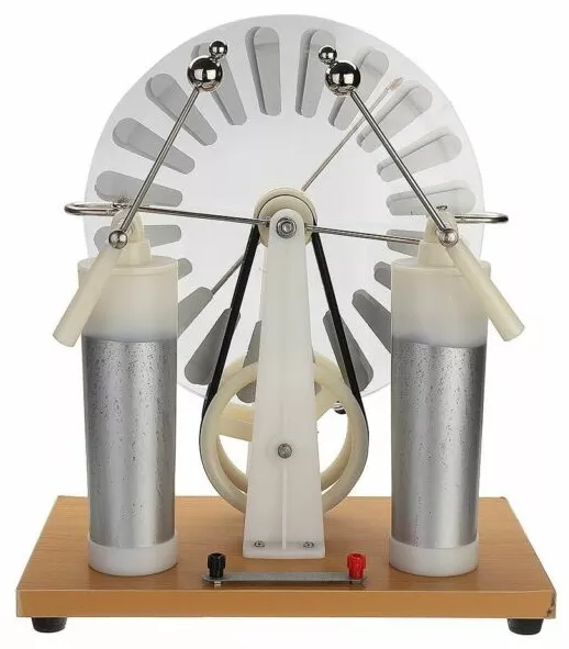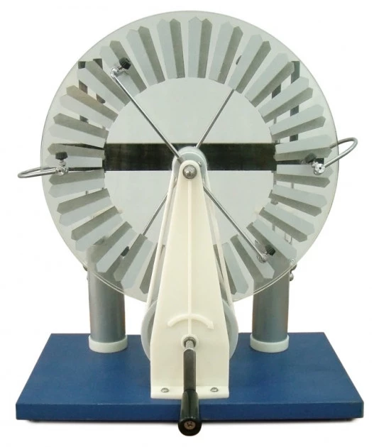 Електрофорна машина (генератор Вімшерста) призначена для демонстраційних цілей на уроках фізики. Досліди з її використанням познайомлять дітей з електростатичної індукцією. Алюмінієві сектори на дисках мають додаткові заклепки, а струмознімачі пружинну основу. Звертатися з механізмом необхідно тільки вчителю або під його контролем. Зберігати потрібно в сухому опалювальному приміщенні. У комплекті додається інструкція для правильного використання.